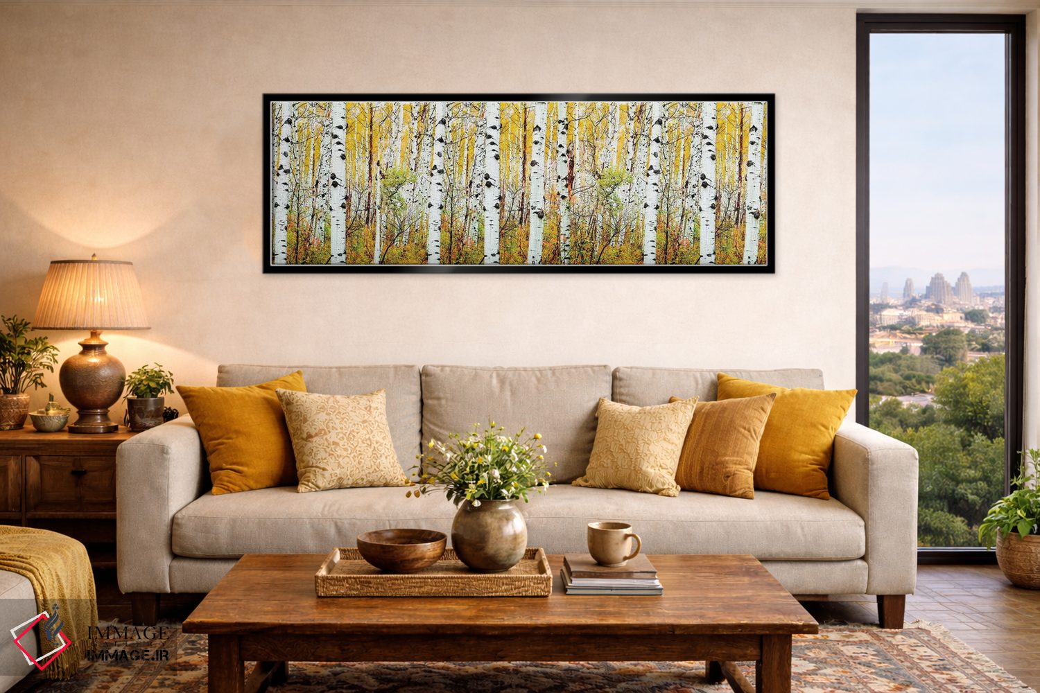 براساس پالت ترکیبی اثر، قاب بلوط روشن (چوبی) پیشنهاد اول است و استخوانی ملایم مکمل. برای سفارشهای پروژهای با ابعاد و قابهای اختصاصی با ایماژ در تماس باشید.