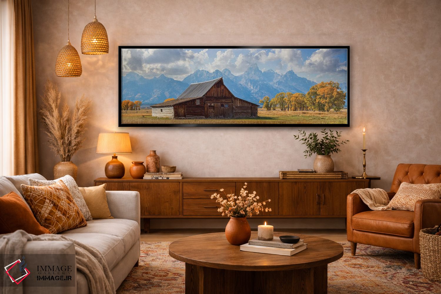 این اثرِ «سوزانه کرمر» با تمِ این اثر و حس کلبهای، برای نشیمنهای راحت و فضاهای کوهستانی/روستیک بسیار مناسب است.