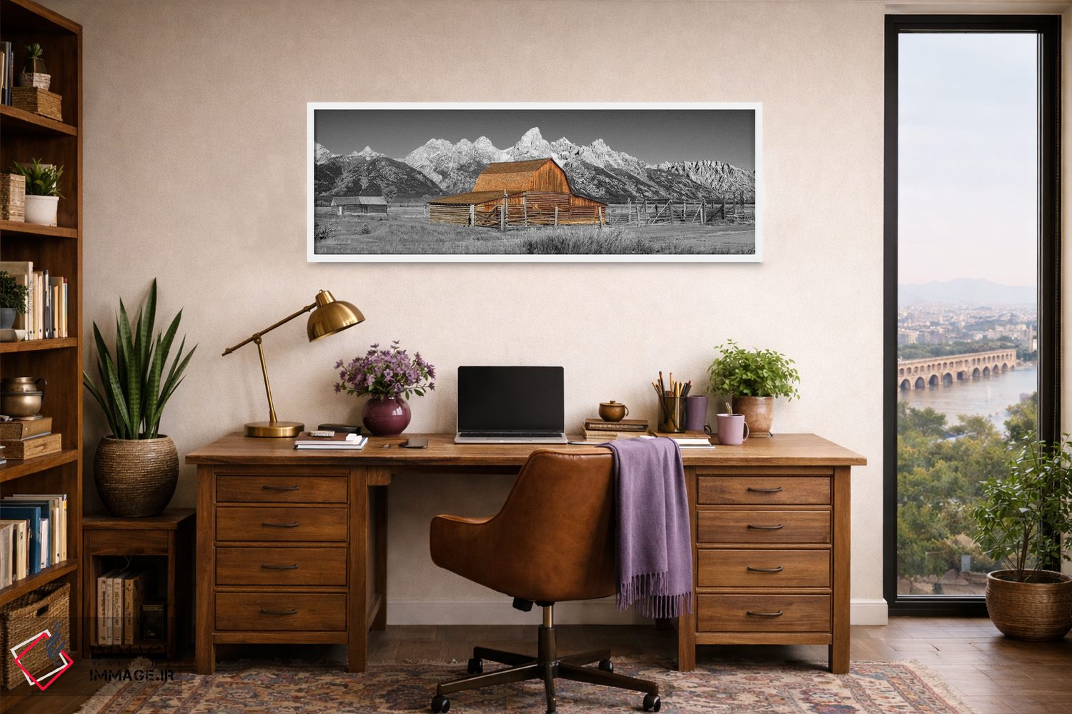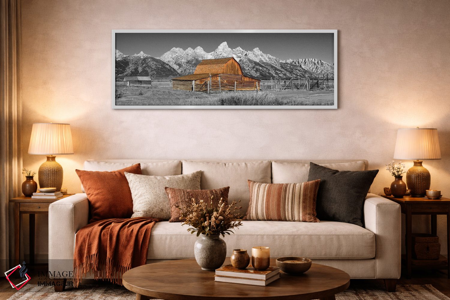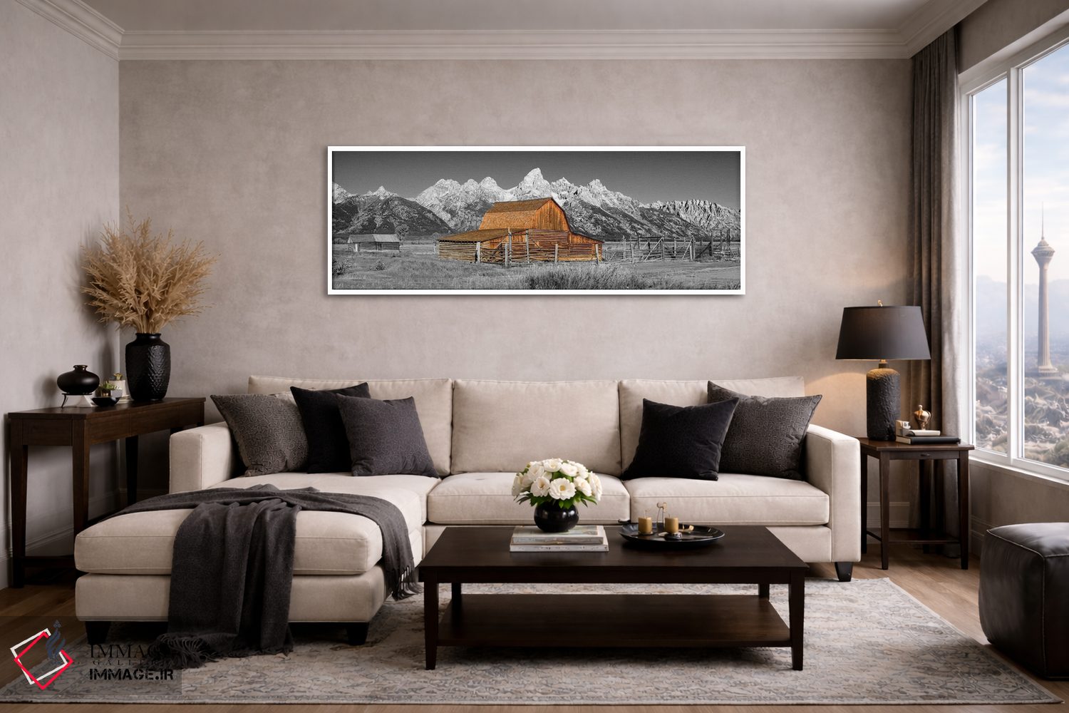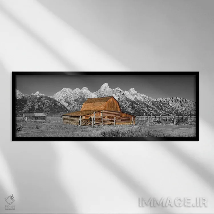 تابلو دکوراتیو نمای پانورامیک سیاه و سفید انبار گرند تتون اثر سوزانه کرمر