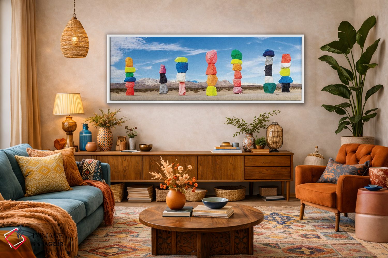 گاهی یک اثر کافیست تا فضا جمعوجور شود؛ «Nevada، هنر در بیابان، نوادا» اثرِ «سوزانه کرمر» جلوهٔ رنگها را طبیعیتر و متعادلتر نشان میدهد؛ برای اتاق کار و گوشهٔ مطالعه پیشنهاد میشود. هم از دور چشمگیر است و هم از نزدیک پرداخت دارد.