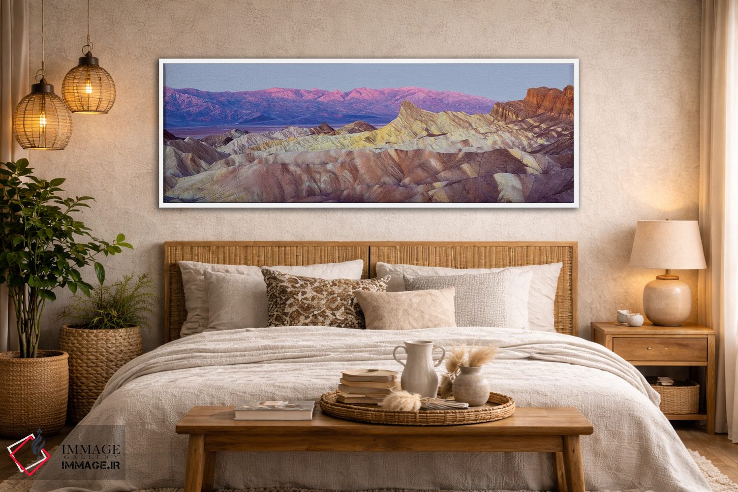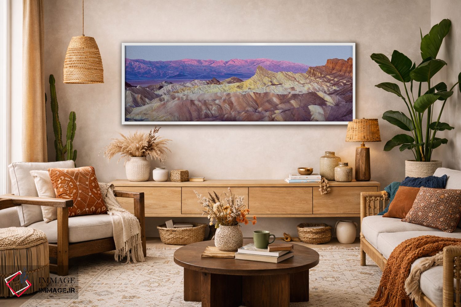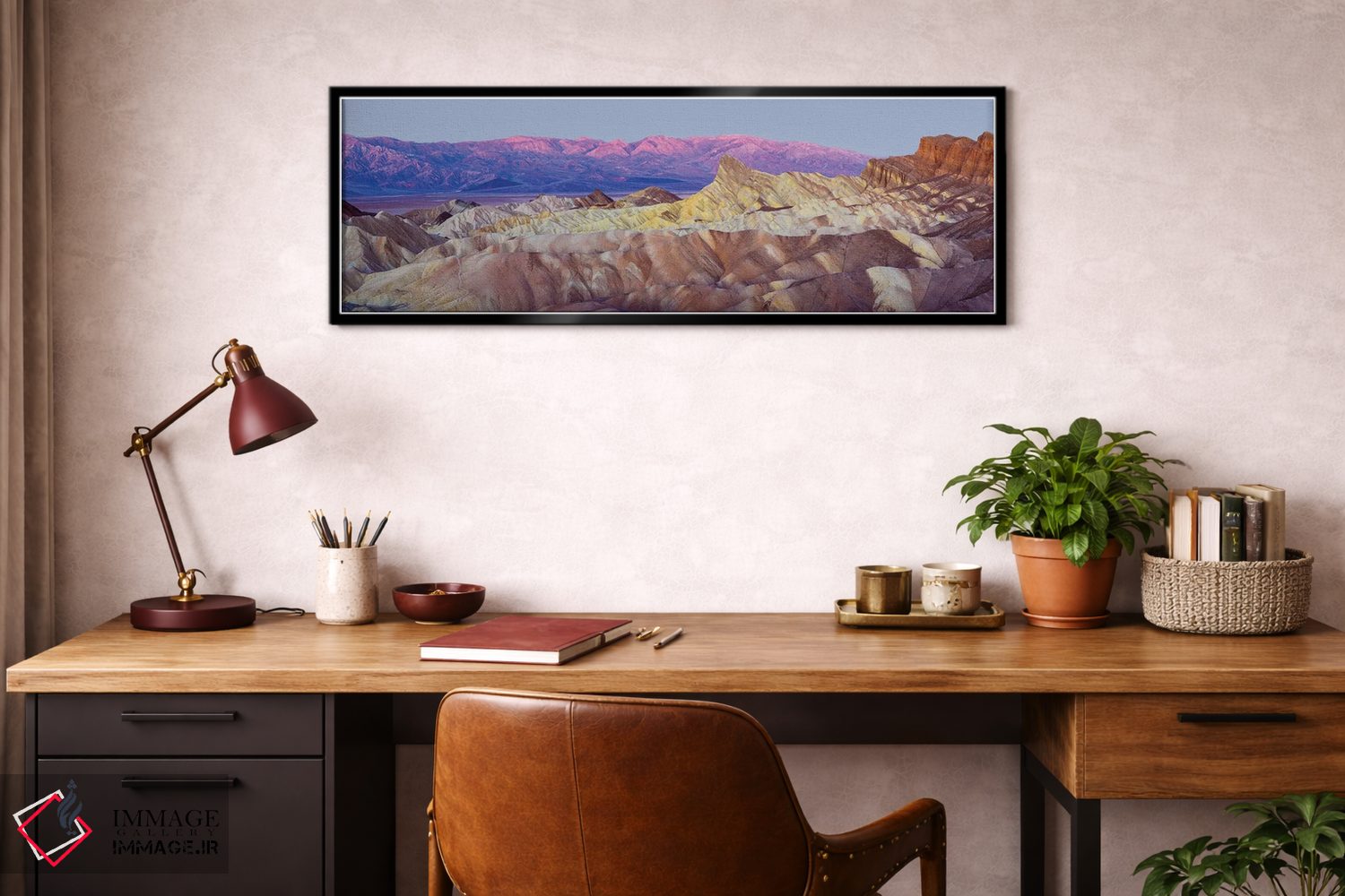 این تابلو با عنوان «Death Valley، منظره پانورامای زابریسکی پوینت در طلوع آفتاب، دره مرگ» اثرِ «سوزانه کرمر» سلیقهٔ صاحبخانه را بیاغراق نشان میدهد؛ برای دیوارهای گالریوار و ترکیب چند اثر پیشنهاد میشود. فضا را شلوغ نمیکند؛ فقط دقیقترش میکند.