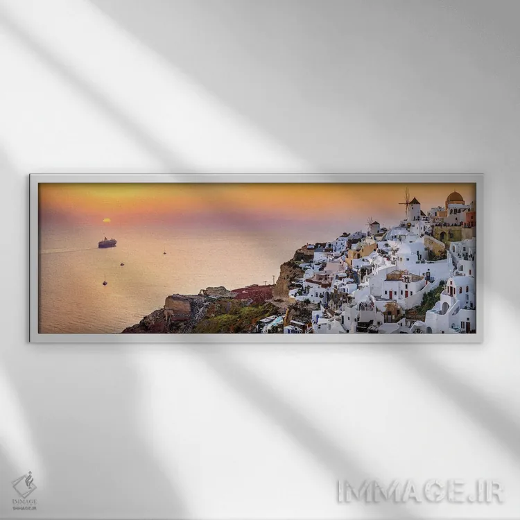 تابلو دکوراتیو Oia Santorini,کشتی تفریحی در حال حرکت به سوی غروب، اویا سان… اثر سوزانه کرمر
