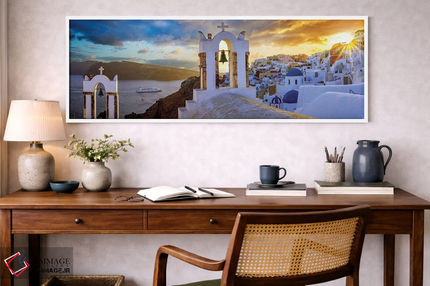 تابلو دکوراتیو Greece,غروب شگفت انگیز اویا سانتورینی، یونان اثر سوزانه کرمر - نمای روبه‌رو روی دیوار