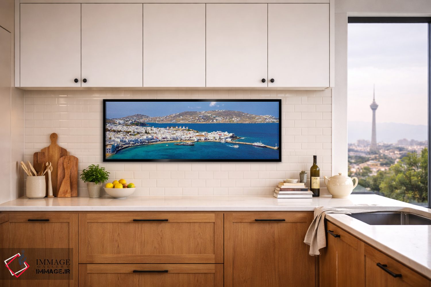 براساس پالت ترکیبی اثر، قاب تیک گرم (چوبی) پیشنهاد اول است و مشکی مات (فریم متوسط) مکمل. برای سفارشهای پروژهای با ابعاد و قابهای اختصاصی با ایماژ در تماس باشید.