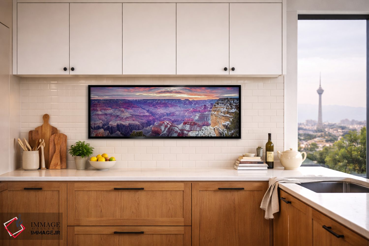 براساس پالت ترکیبی اثر، قاب تیک گرم (چوبی) پیشنهاد اول است و مشکی مات (فریم متوسط) مکمل. برای سفارشهای پروژهای با ابعاد و قابهای اختصاصی با ایماژ در تماس باشید.