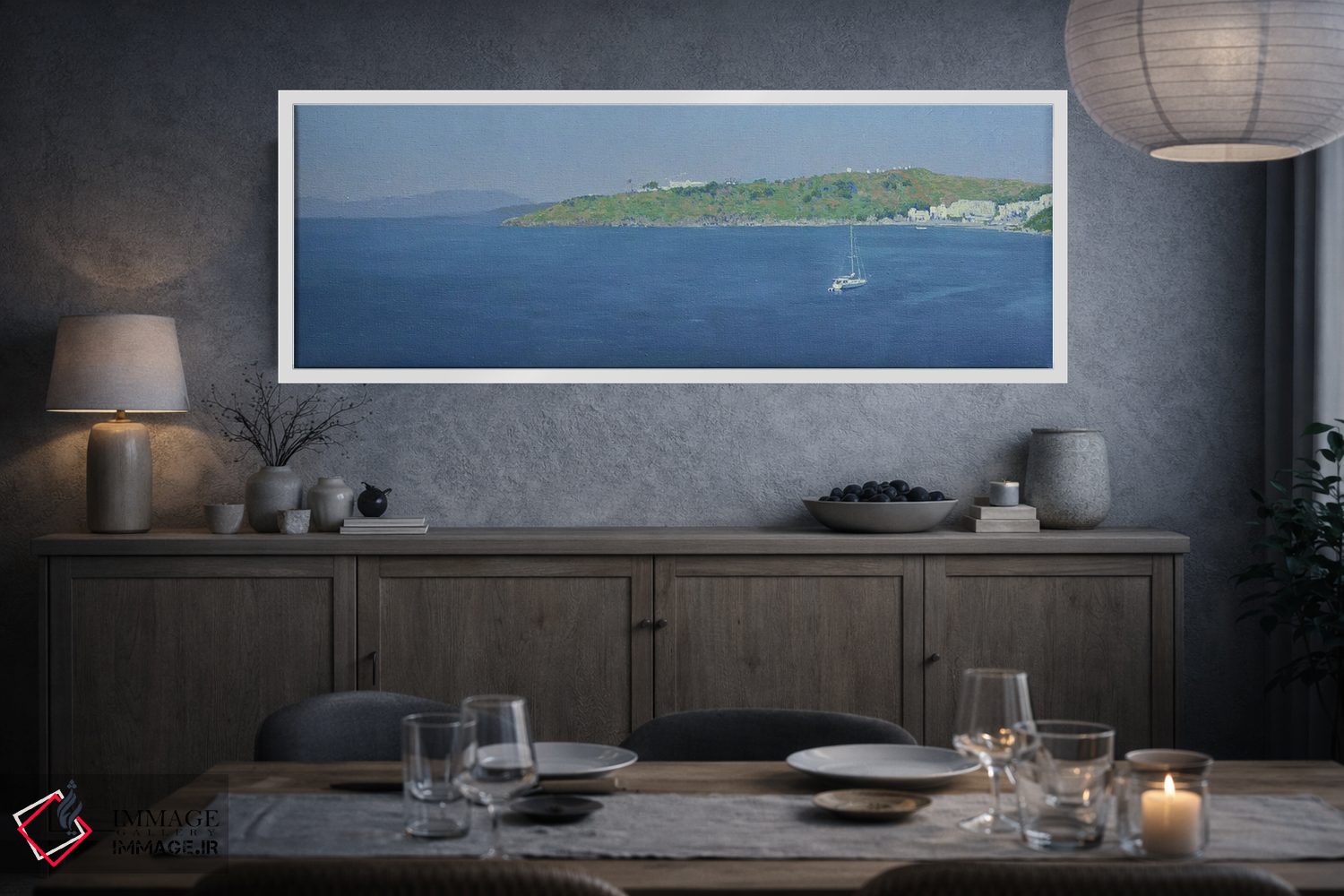 براساس پالت سرد اثر، قاب سفید مات (فریم باریک) پیشنهاد اول است و نقرهای برسخورده (متالیک) مکمل. برای سفارشهای پروژهای با ابعاد و قابهای اختصاصی با ایماژ در تماس باشید.