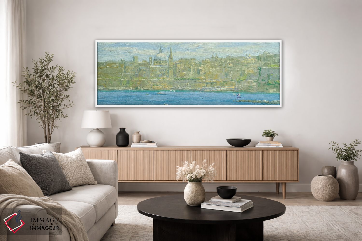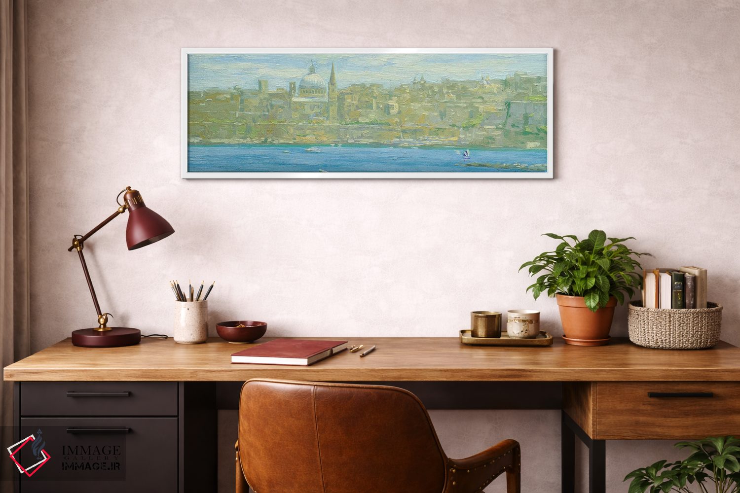 براساس پالت سرد اثر، قاب بلوط روشن (چوبی) پیشنهاد اول است و استخوانی ملایم مکمل. برای سفارشهای پروژهای با ابعاد و قابهای اختصاصی با ایماژ در تماس باشید.
