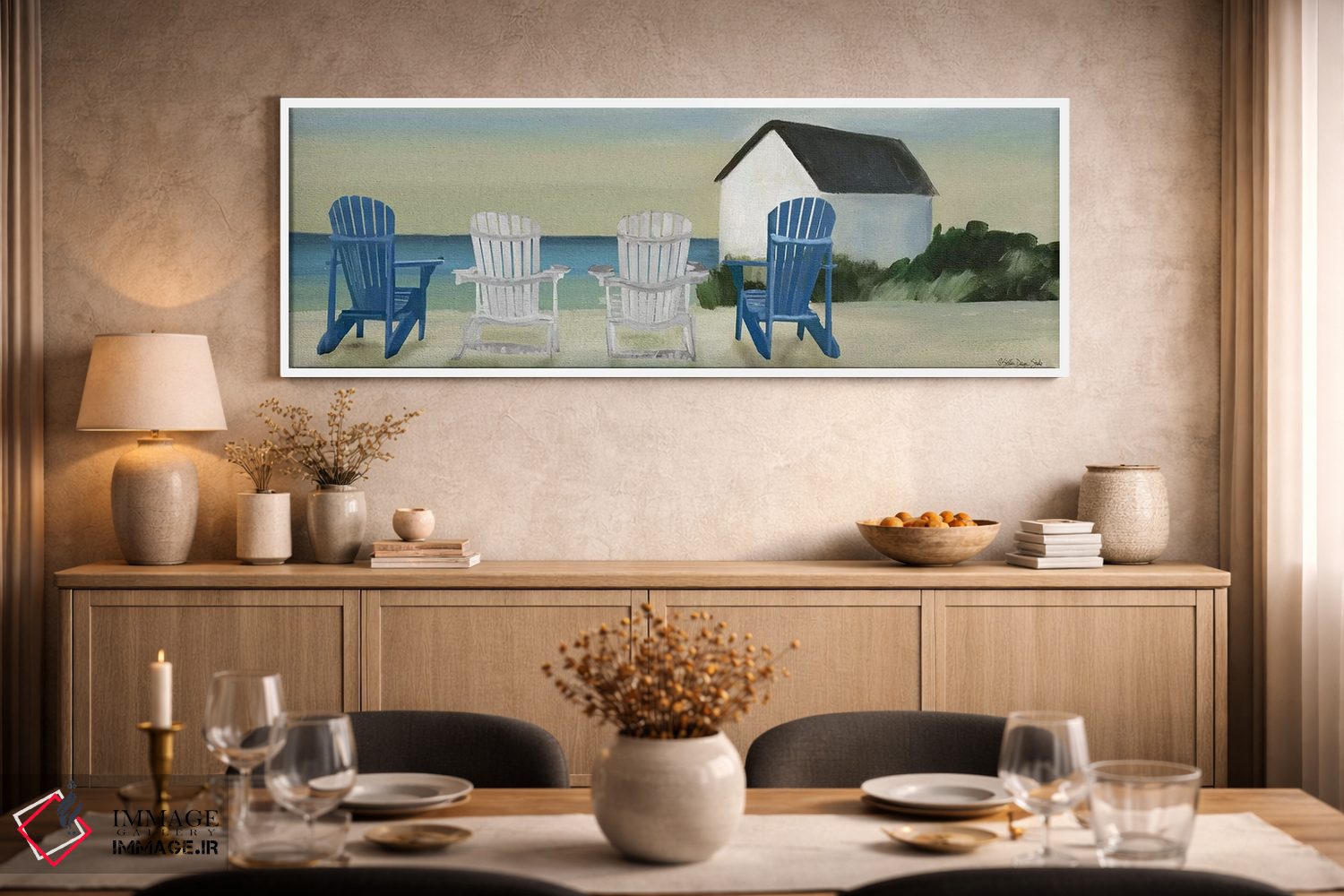 «چشمانداز صندلیهای ساحلی» اثرِ «استودیو طراحی استلار» یک قاب سبک و روشن است؛ موضوعِ این اثر در حالوهوای ساحلی به فضا حسِ باز بودن میدهد.