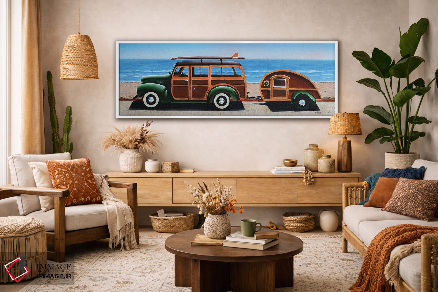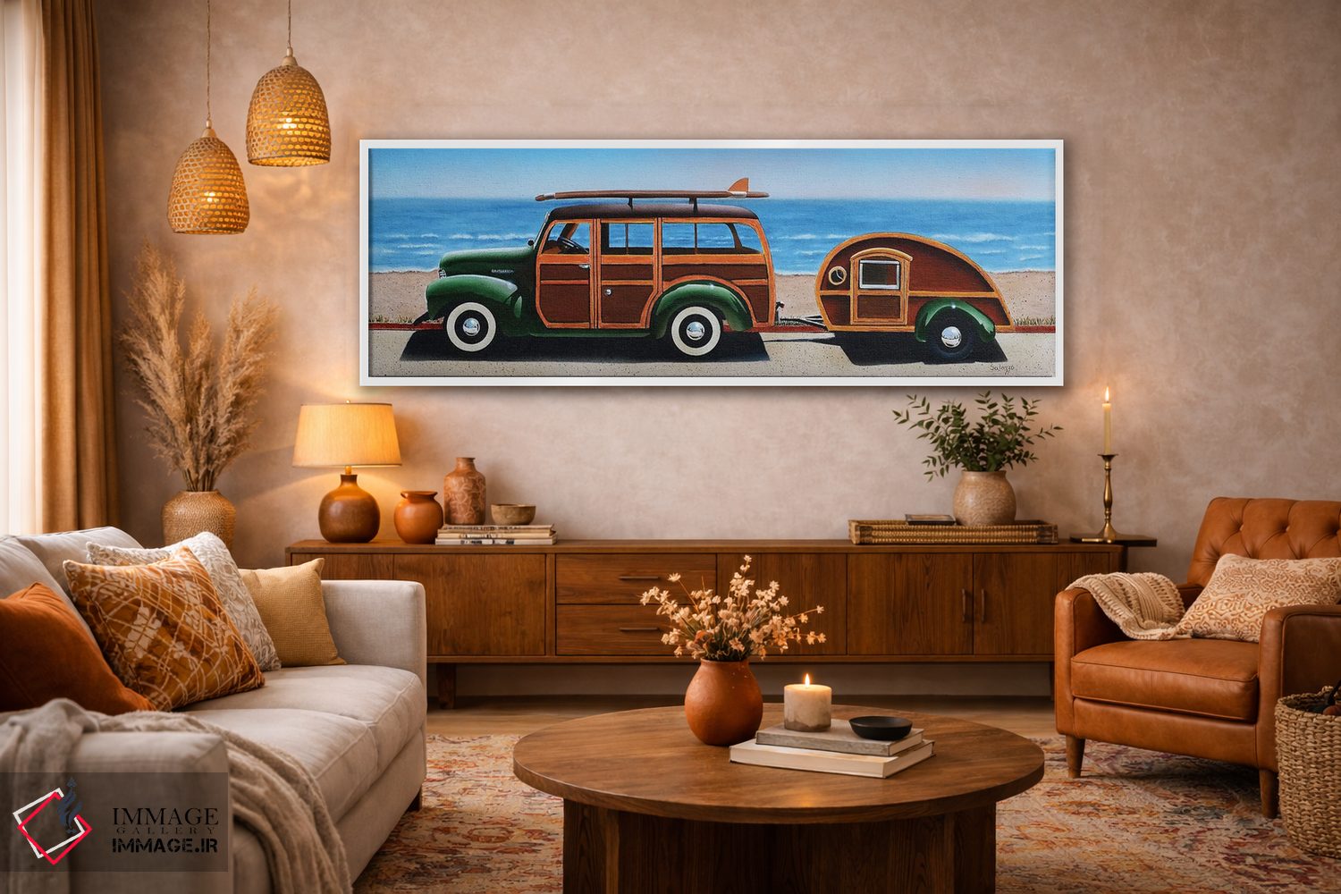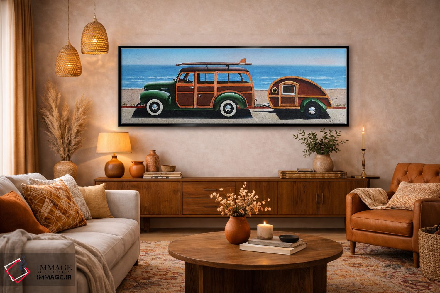 این تابلو با عنوان «وودی (نام شخصیت یا به معنی چوبی)» اثرِ «جان سالوتزو» چیدمان را از حالت پراکنده خارج میکند؛ برای فضاهایی که میخواهید آرام اما جدی دیده شوند پیشنهاد میشود. جزئیاتش نزدیکِ کار هم ارزش نگاه دارد.