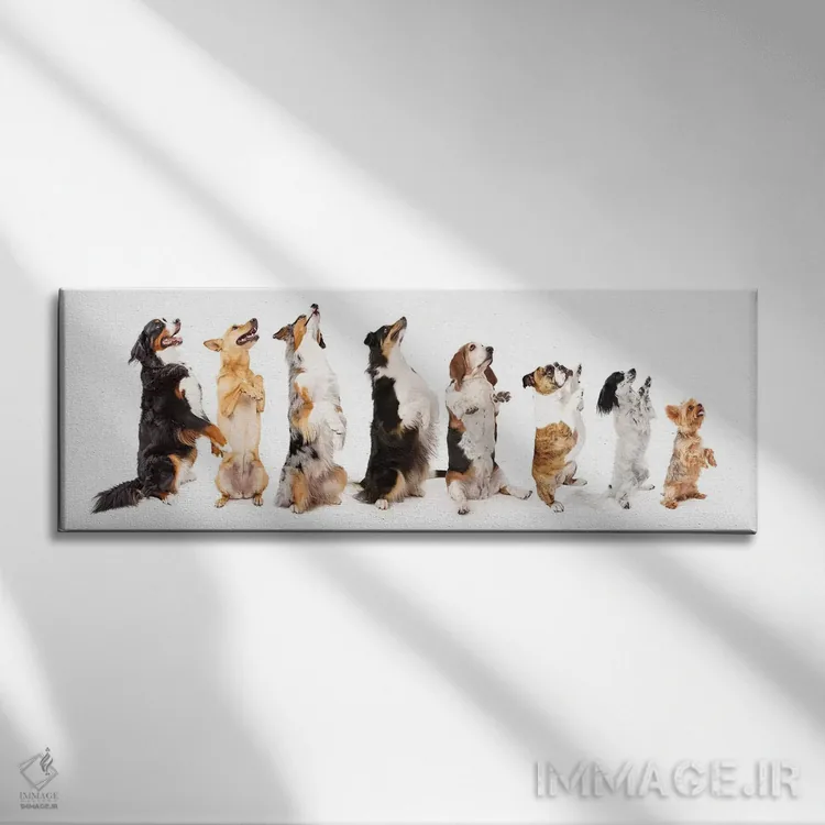 تابلو دکوراتیو ردیفی از سگ ها نشسته و به پهلو گدایی می کنند اثر سوزان ریچی