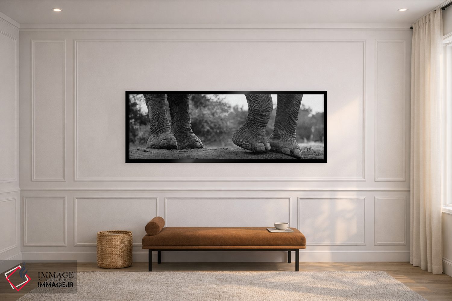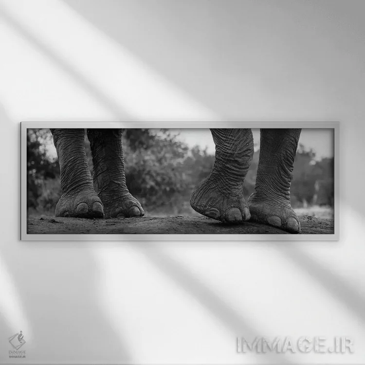 برای دیوارهای ساده، «Loxodonta Africana. Mashatu Game Reserve، Botswana.، نمای نزدیک از پای فیل آفریقایی (Loxodonta africana)، منطقه محافظت شده ماشاتو، بوتسوانا» اثرِ «سرجیو پیتامیتز» حس طبیعت را بیدغدغه وارد خانه میکند؛ برای اتاق کودک (بدون لحن کودکانه) انتخابی خوشسلیقه است. با نورپردازی نقطهای، جذابتر هم میشود.