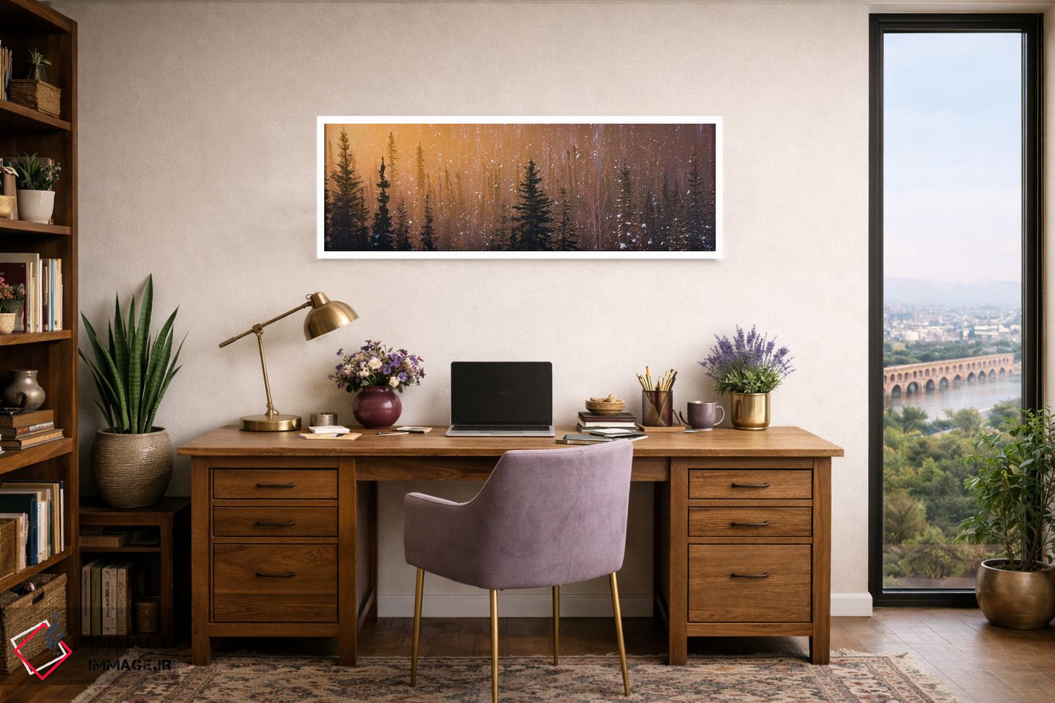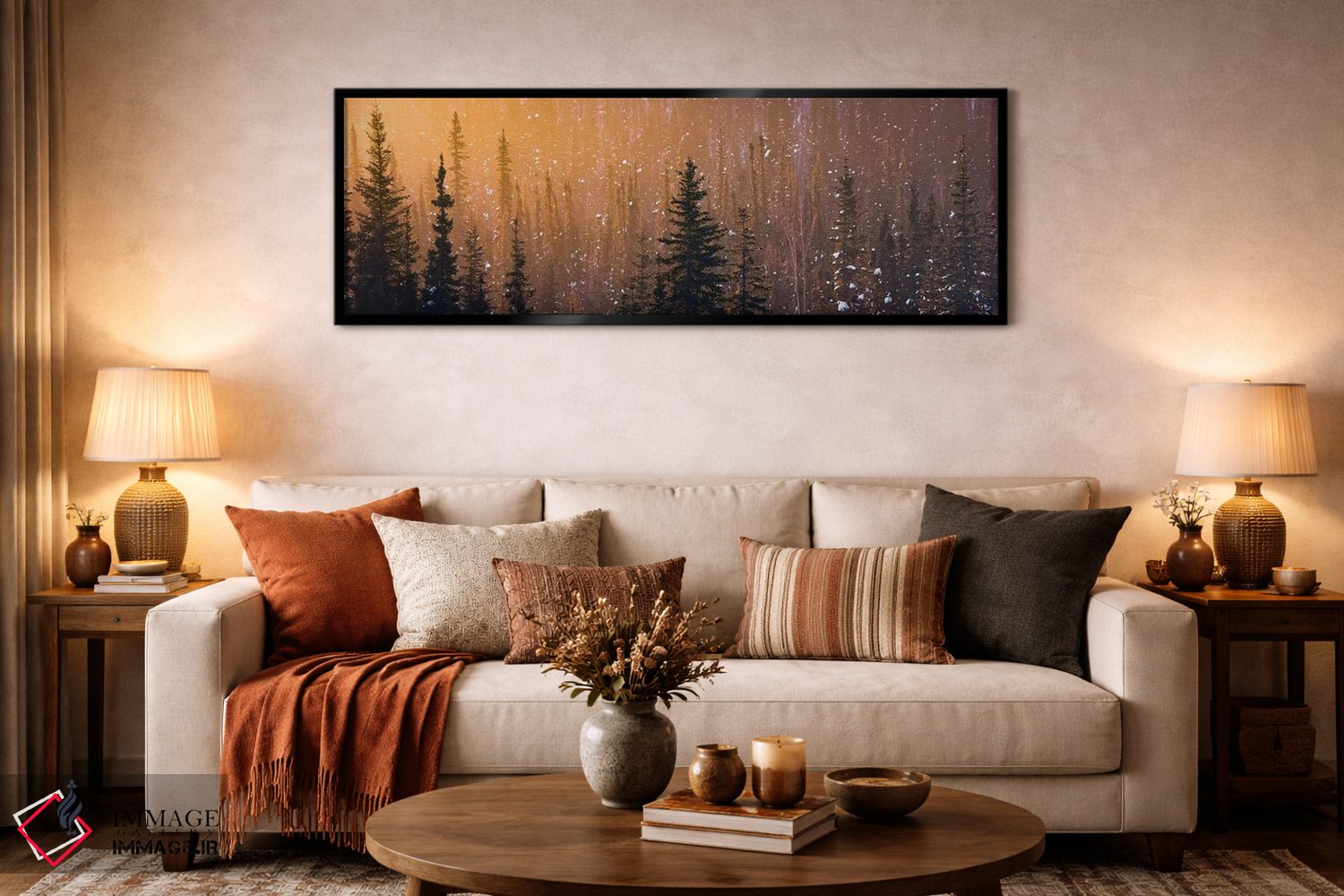 بوم گالری ایماژ طوری طراحی شده که اثر روی دیوار «پرداختشده» و حرفهای دیده شود—نه پرزرقوبرقِ بیپایه؛ بلکه دقیق و خوشپرداخت. بافت ظریف کنواس باعث میشود حس اثر هنری را در نگاه نزدیک نگه میدارد. کنترل تونها کمک میکند کمک میکند رنگها روی دیوار واقعیتر بنشینند و همین «پرداخت» تفاوت را میسازد. حاصل کار، یک تابلو خوشنشین است که هم از دور اثرگذار است و هم از نزدیک خوشخوان؛ اگر فضا مینیمال است، همین پرداخت تمیز کافی است.