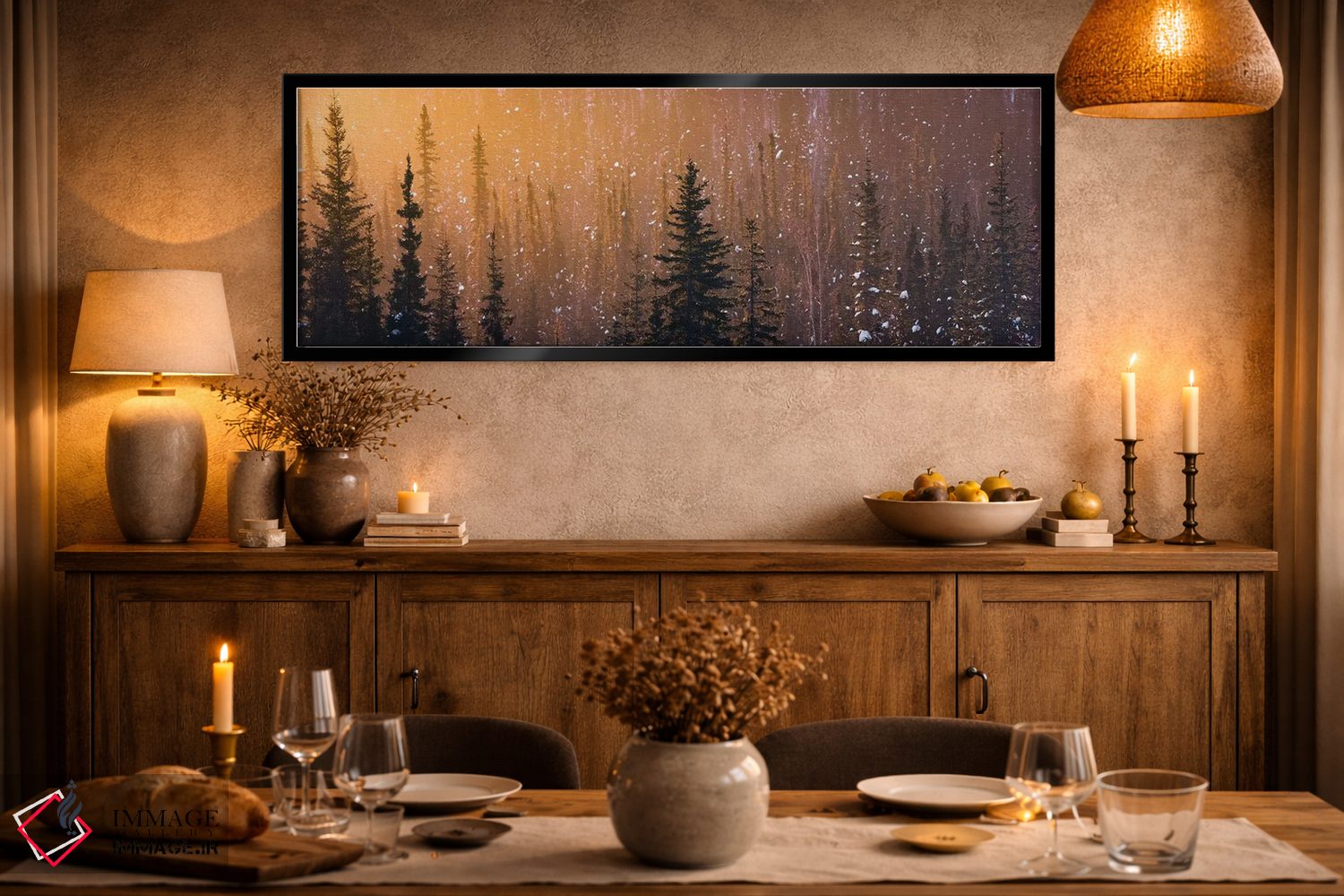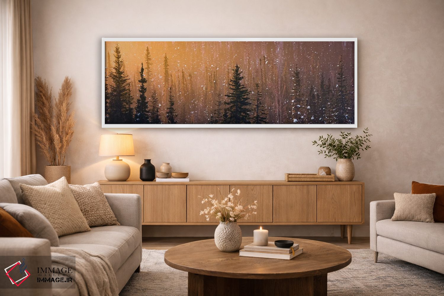 براساس پالت گرم اثر، قاب تیک گرم (چوبی) پیشنهاد اول است و مشکی مات (فریم متوسط) مکمل. برای سفارشهای پروژهای با ابعاد و قابهای اختصاصی با ایماژ در تماس باشید.