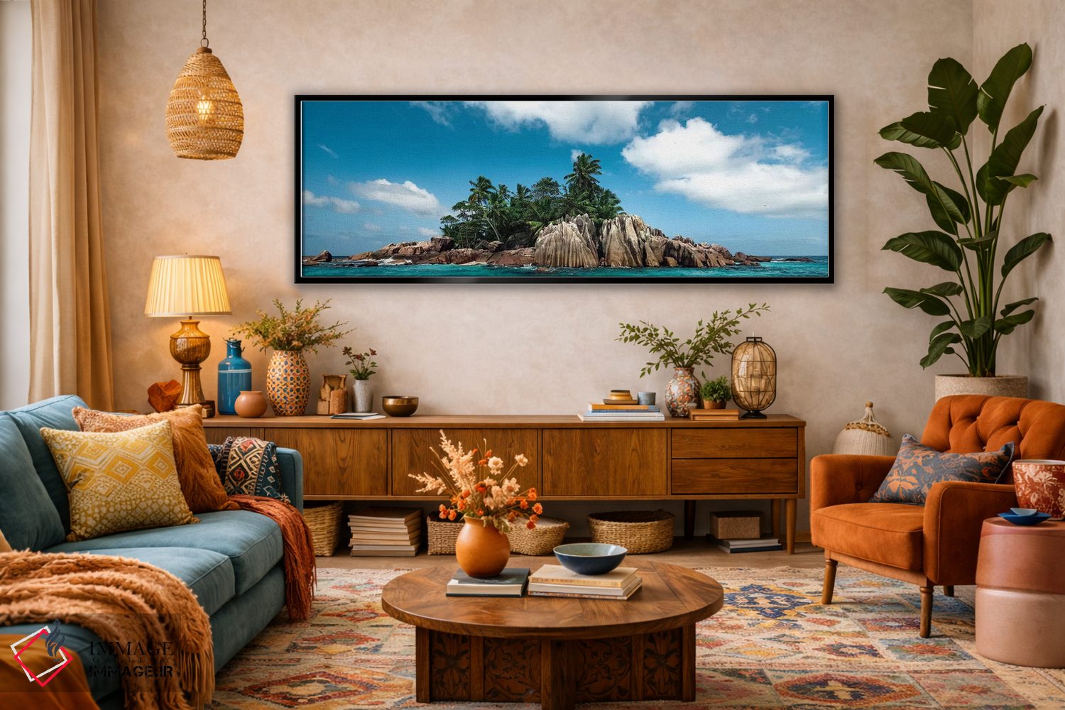 براساس پالت ترکیبی اثر، قاب تیک گرم (چوبی) پیشنهاد اول است و مشکی مات (فریم متوسط) مکمل. برای سفارشهای پروژهای با ابعاد و قابهای اختصاصی با ایماژ در تماس باشید.