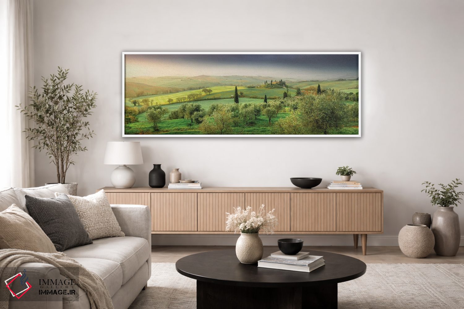 بوم گالری ایماژ طوری طراحی شده که اثر روی دیوار «پرداختشده» و حرفهای دیده شود—نه پرزرقوبرقِ بیپایه؛ بلکه دقیق و خوشپرداخت. با بافت ظریف کنواس، حس اثر هنری را در نگاه نزدیک نگه میدارد و در دکورهای مدرن و مینیمال خیلی خوب مینشیند. کنترل تونها باعث میشود تعادل بهتری بین نور و رنگ ایجاد میکند و برای فضاهای رسمیتر هم انتخاب مطمئنی است. این کیفیت برای دکورهای دقیقتر و پروژههای حرفهای خودش را بهتر نشان میدهد؛ در کنار نورپردازی درست، جلوهی گالریوار بیشتری حس میشود. برای پروژههای معماری داخلی، انتخاب اندازه و قاب را میتوان دقیقتر هماهنگ کرد.