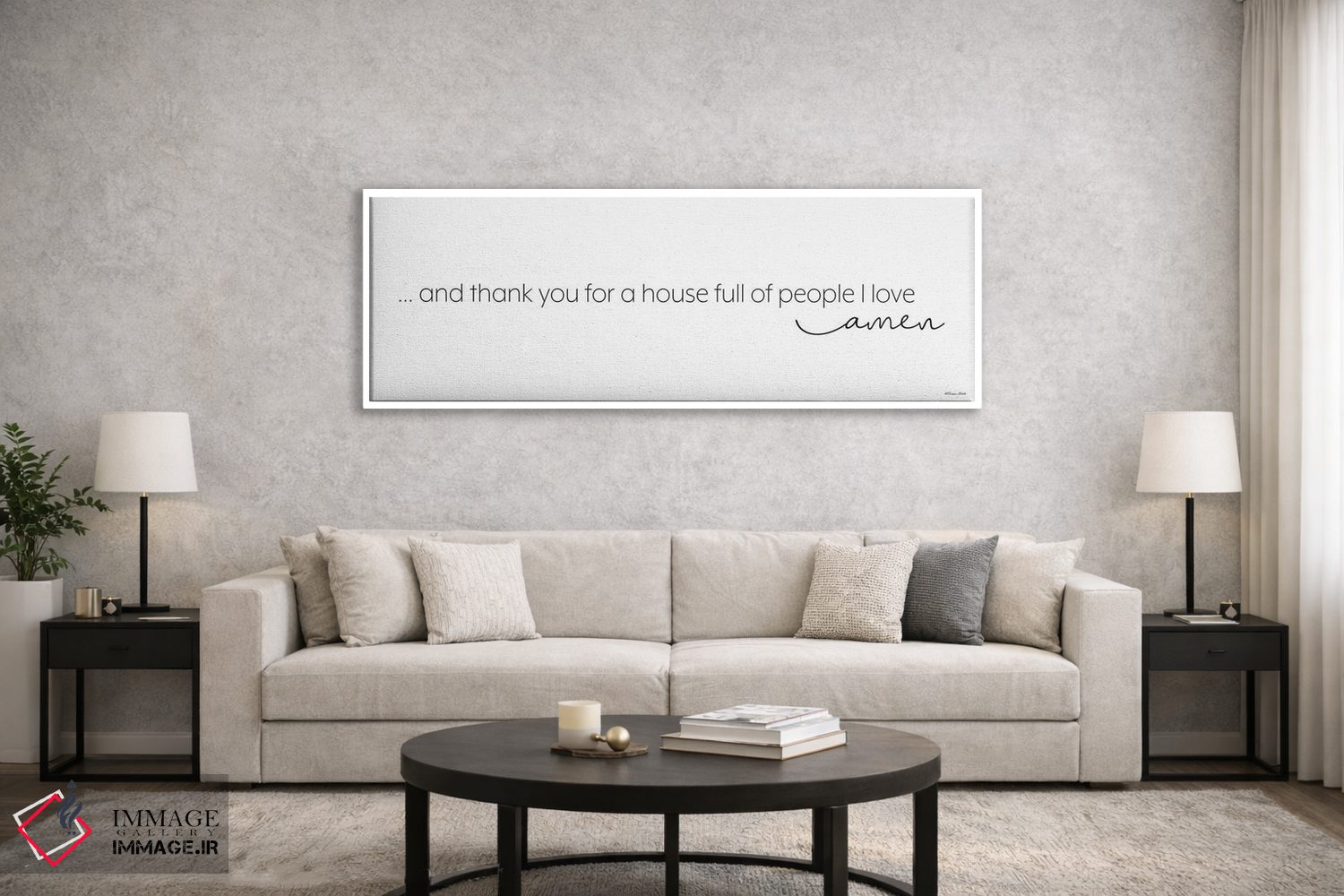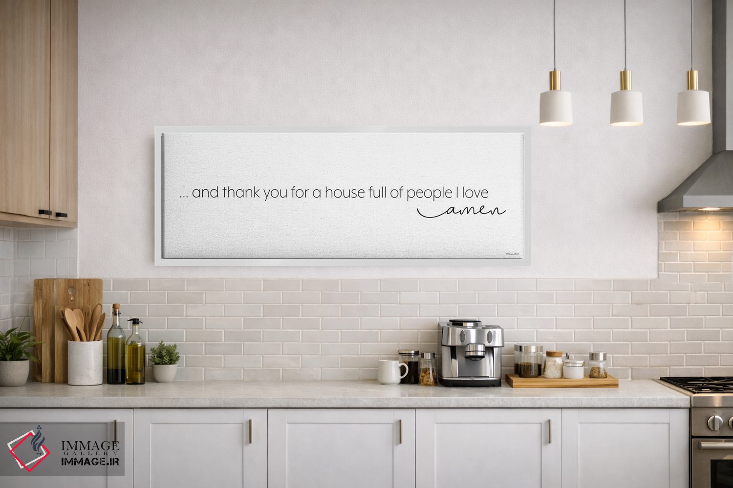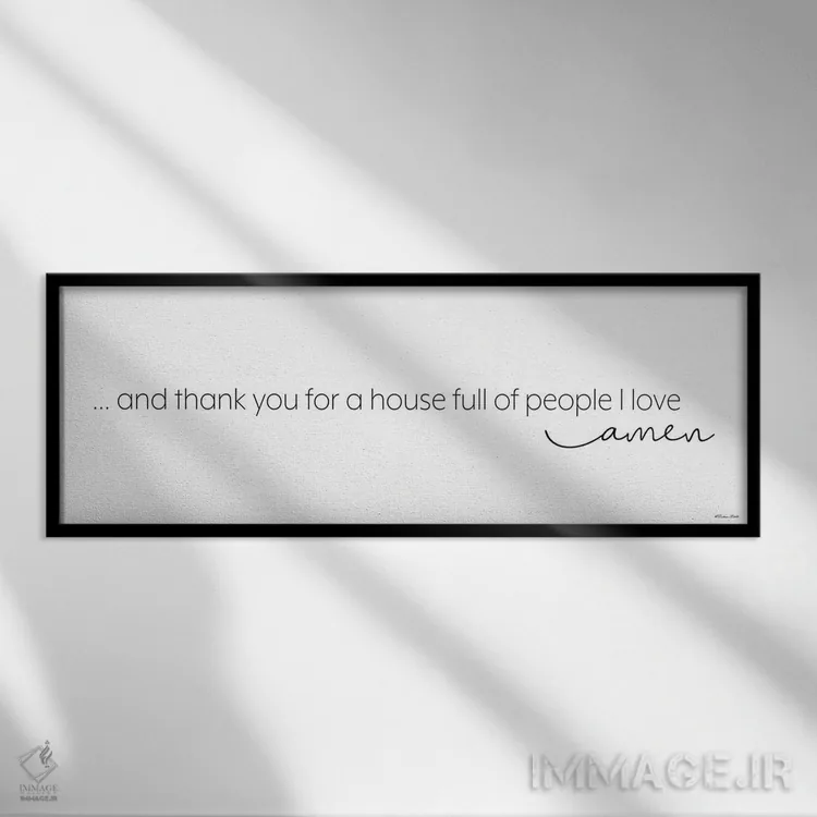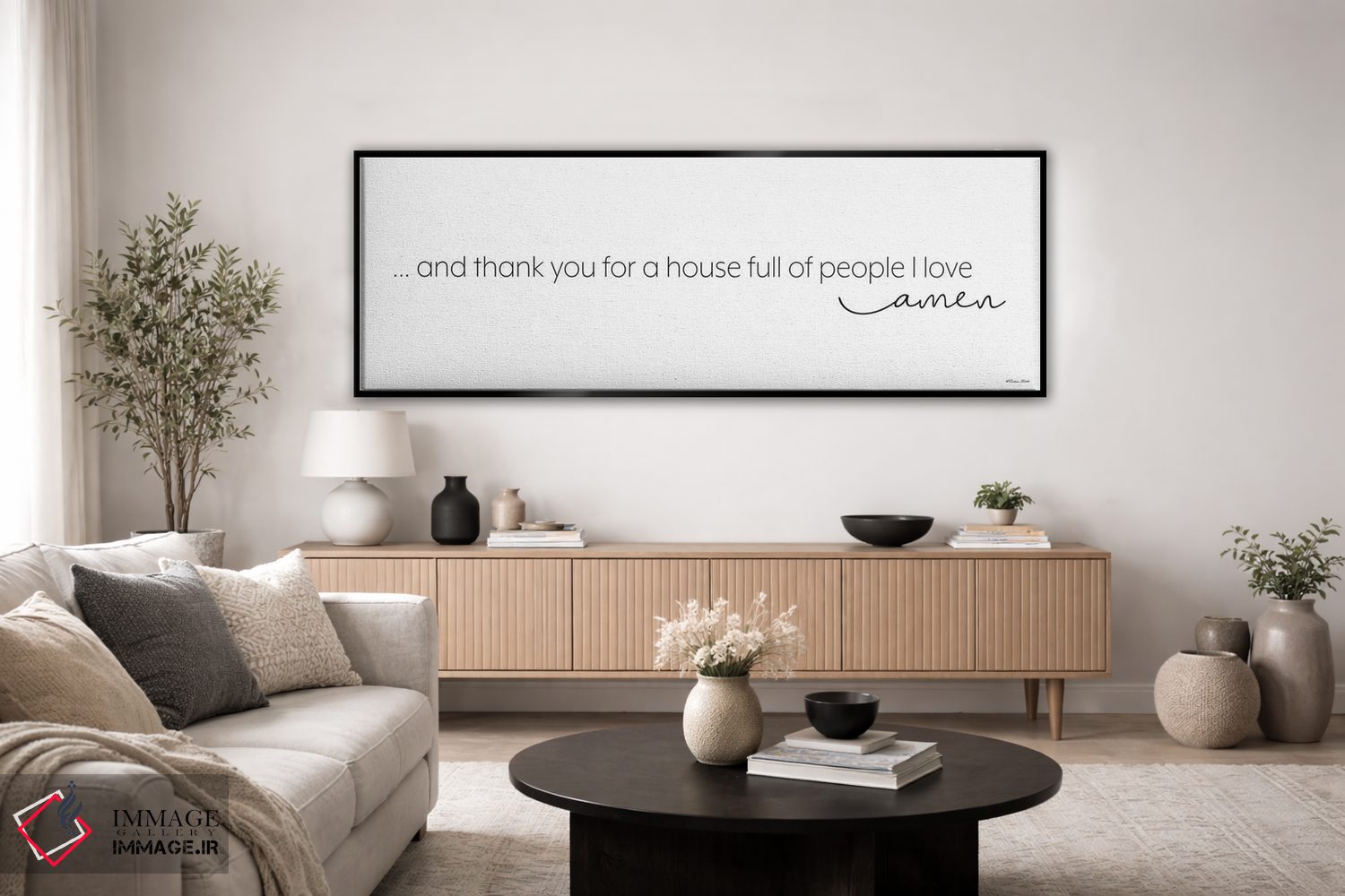 «سپاس از خانهای پر از عزیزانم» اثرِ «سوزان بال» با زبان تایپوگرافی، پیام را ساده و مستقیم روی دیوار مینشاند؛ مناسب برای فضاهای مدرن و مینیمال.