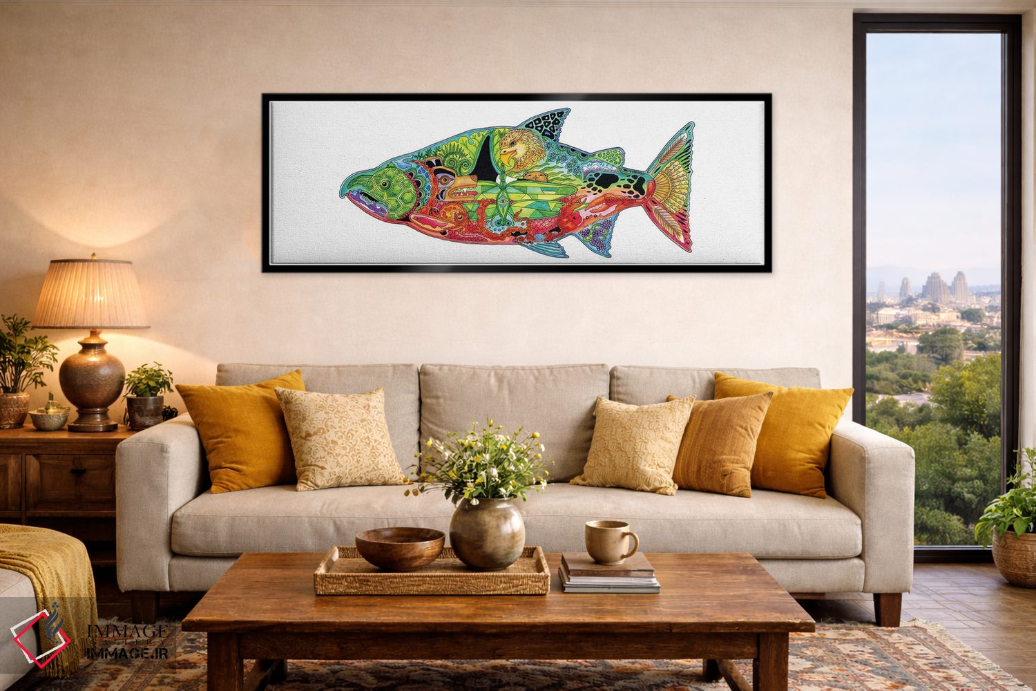 براساس پالت ترکیبی اثر، قاب تیک گرم (چوبی) پیشنهاد اول است و مشکی مات (فریم متوسط) مکمل. برای سفارشهای پروژهای با ابعاد و قابهای اختصاصی با ایماژ در تماس باشید.