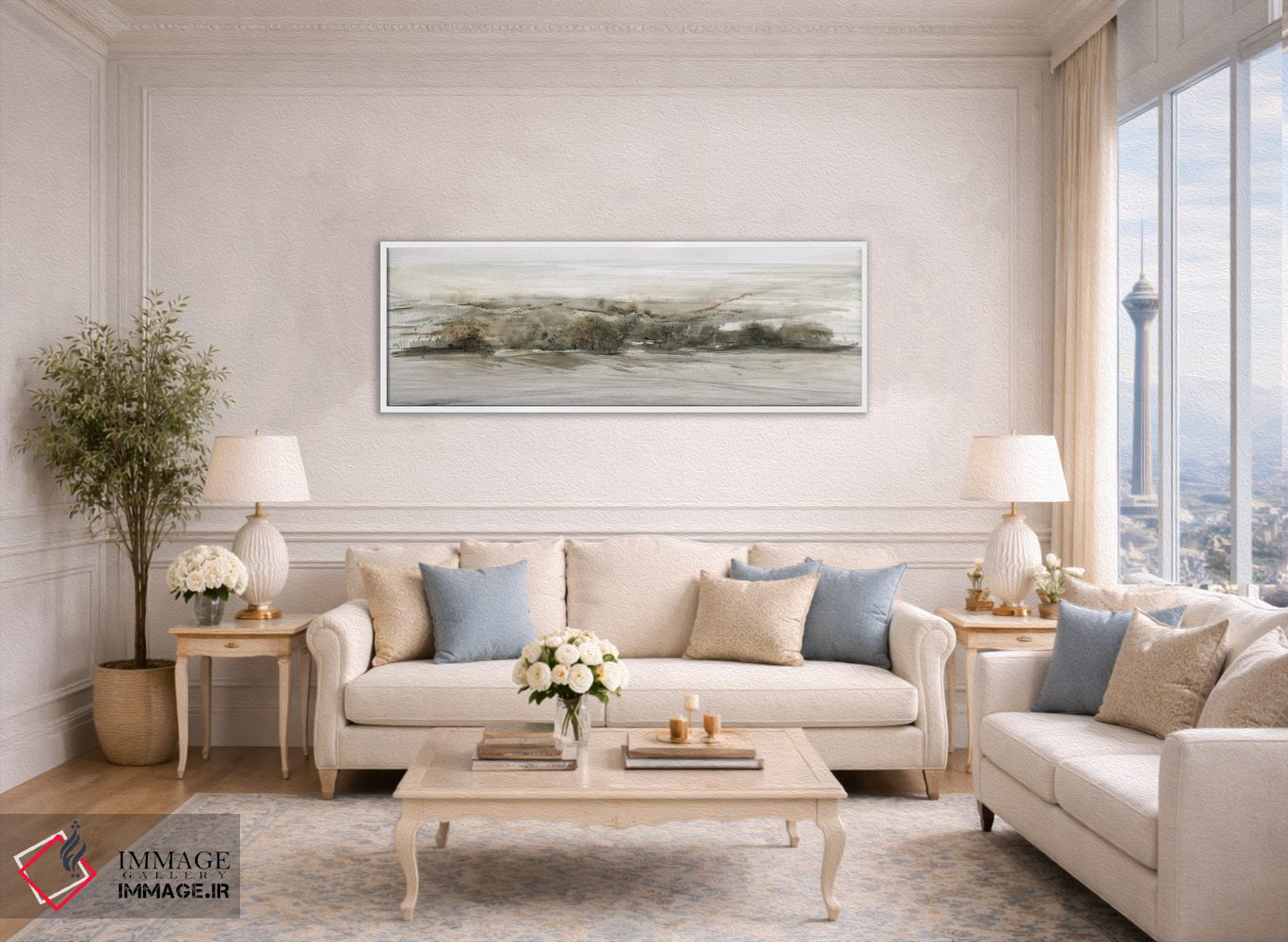 براساس پالت خنثی اثر، قاب بلوط روشن (چوبی) پیشنهاد اول است و استخوانی ملایم مکمل. برای سفارشهای پروژهای با ابعاد و قابهای اختصاصی با ایماژ در تماس باشید.