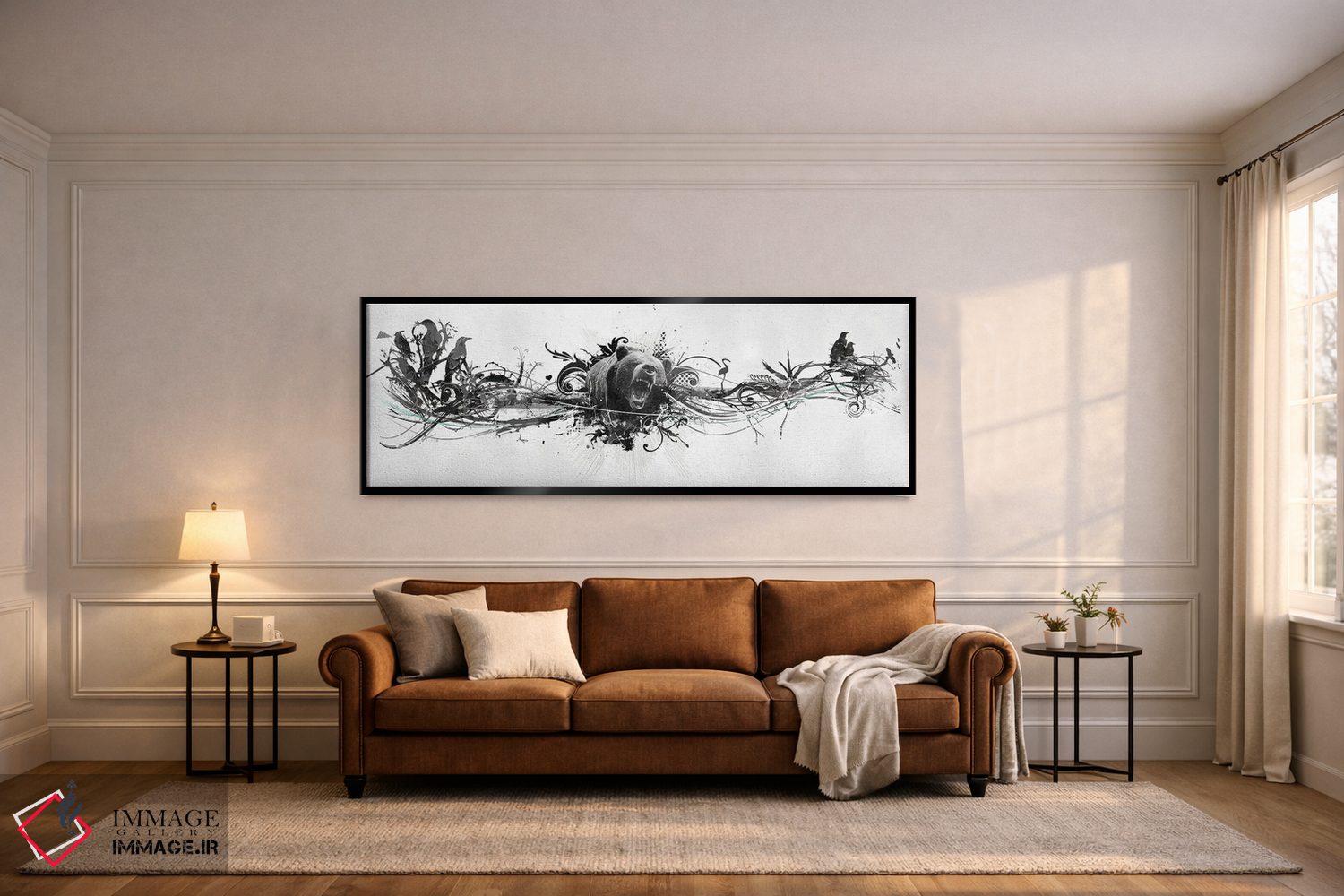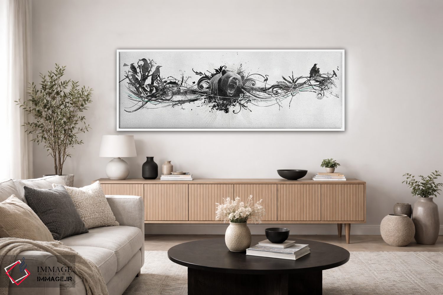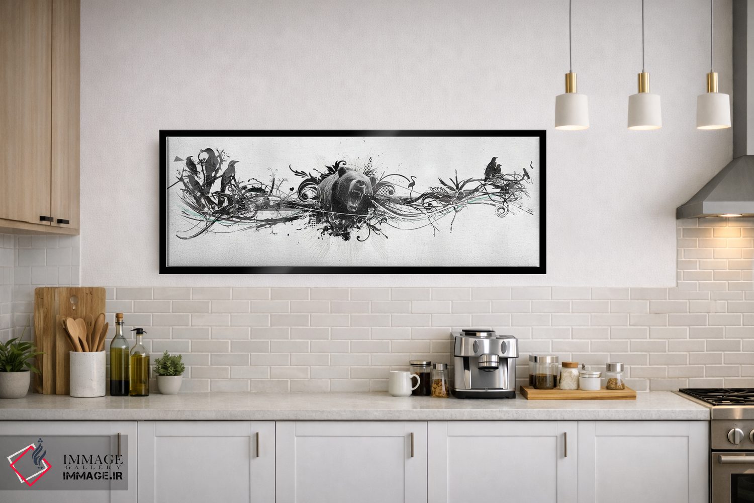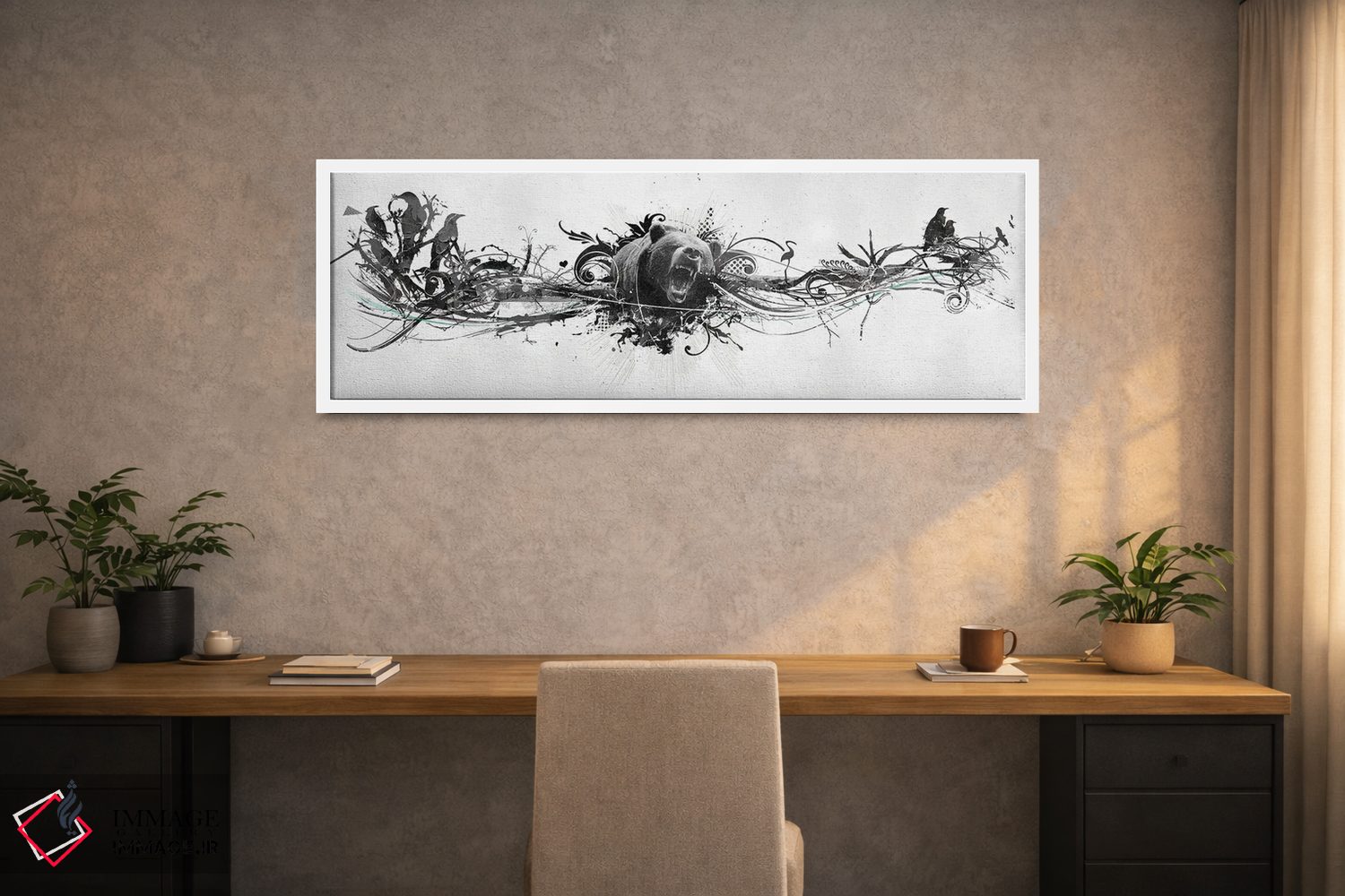 برای دکورهای صمیمی، «غرش خرس» اثرِ «تیس آلبرس» مثل یک امضای بامزه اما متین عمل میکند؛ برای اتاق کودک (بدون لحن کودکانه) انتخابی خوشسلیقه است. به دیوار، قصه میدهد—اما قصهای آرام و شیک.
