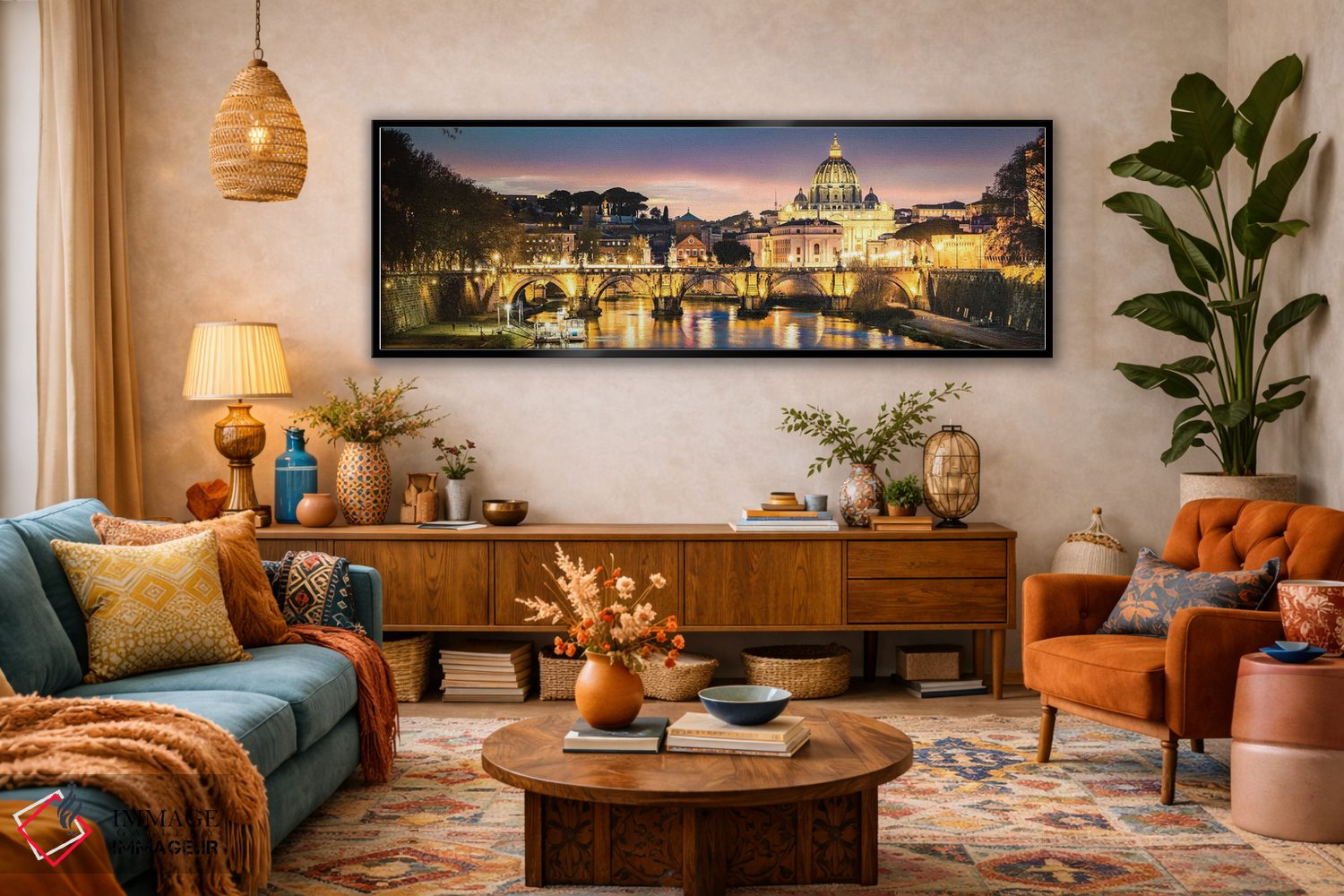 گاهی یک اثر کافیست تا فضا جمعوجور شود؛ «Rome، گرگ و میش بر رود تیبر، رم» اثرِ «ماتئو کولومبو» به فضا، روایت ملایم و قابل لمس میدهد؛ برای فضاهایی با نور طبیعی پیشنهاد میشود. در کنار قاب مناسب، جلوهٔ کار چند برابر میشود.