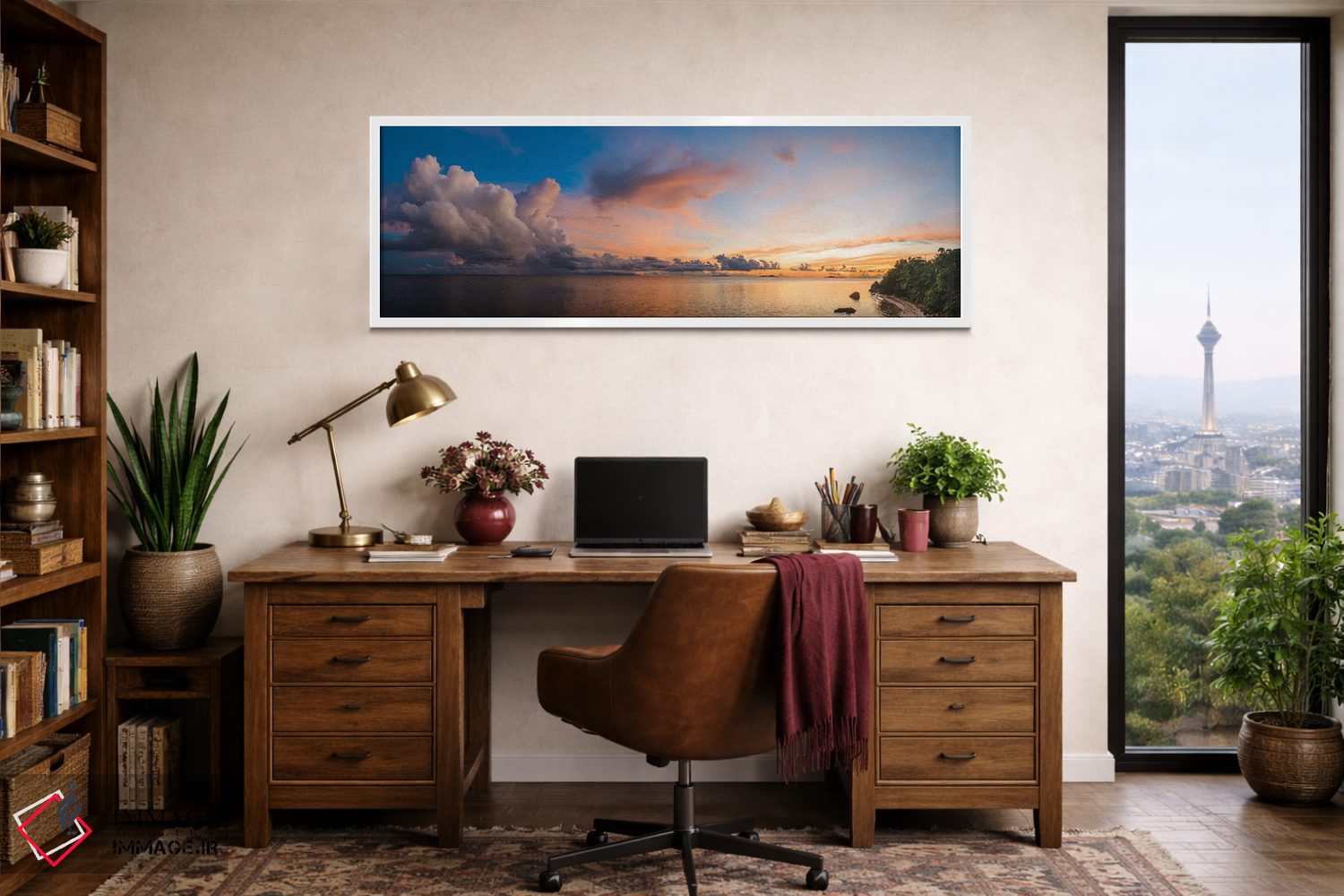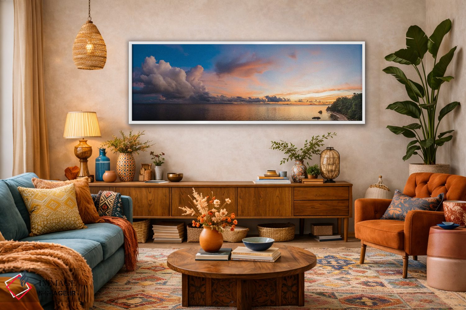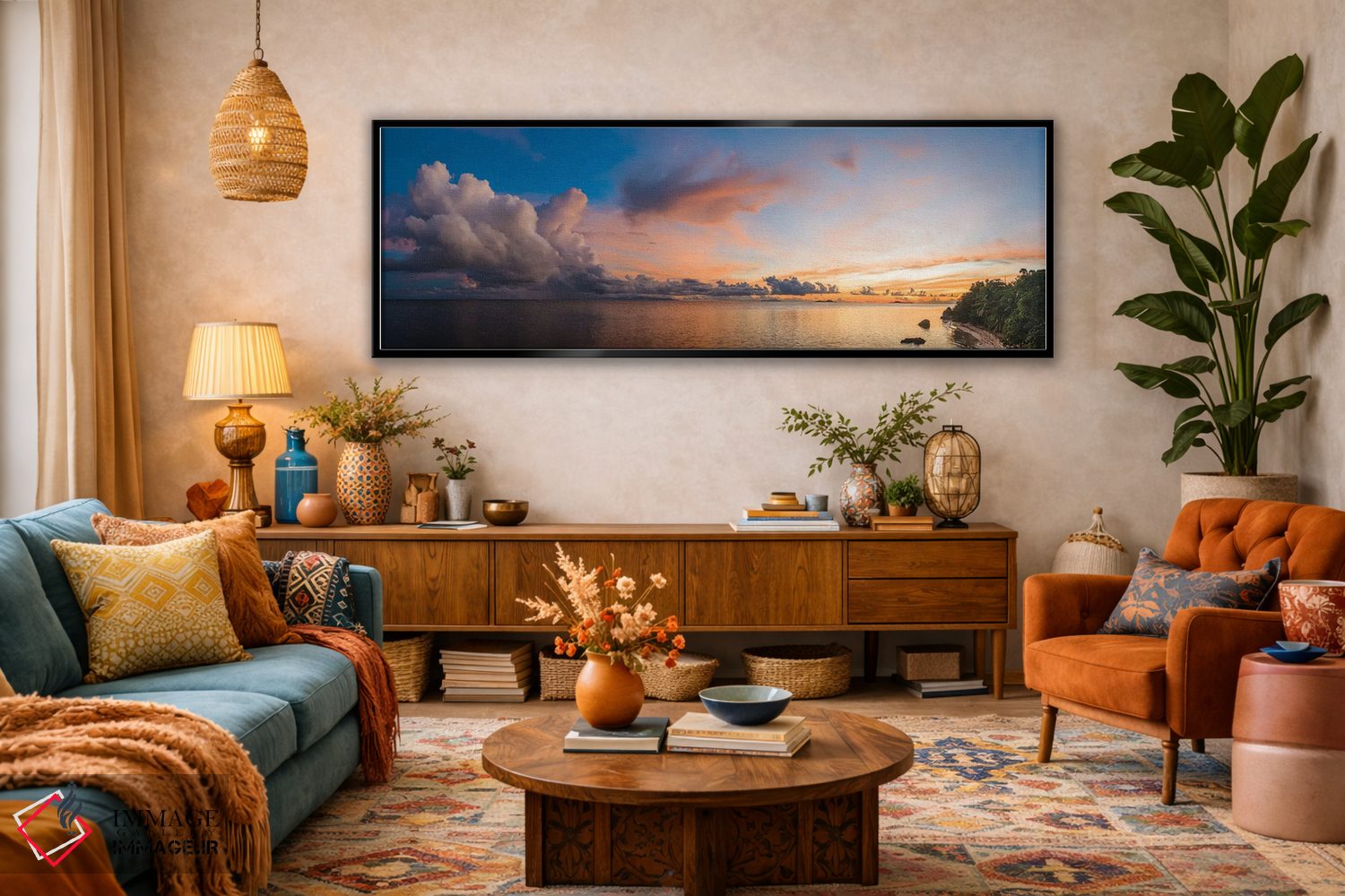براساس پالت ترکیبی اثر، قاب تیک گرم (چوبی) پیشنهاد اول است و مشکی مات (فریم متوسط) مکمل. برای سفارشهای پروژهای با ابعاد و قابهای اختصاصی با ایماژ در تماس باشید.