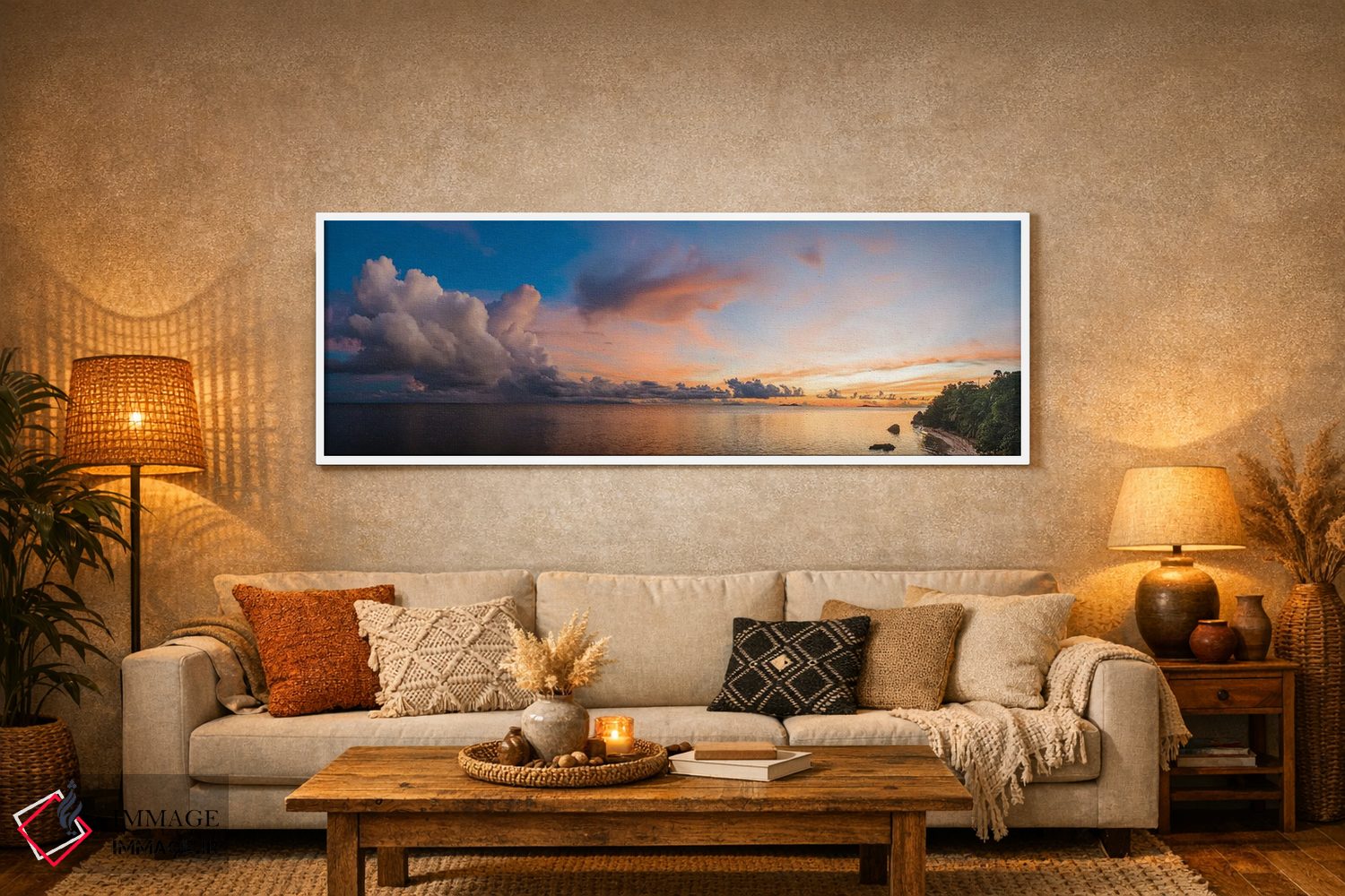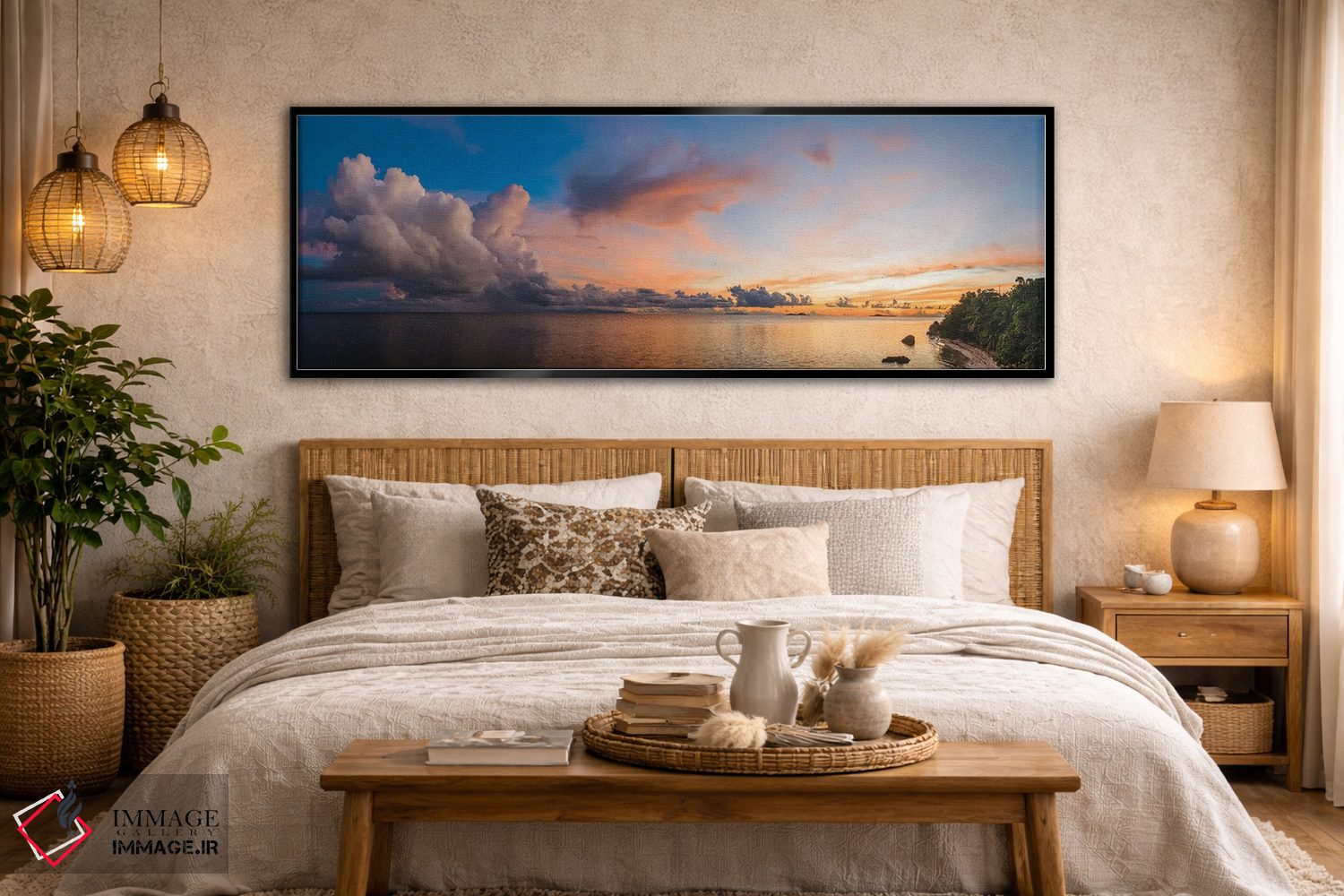 بوم گالری ایماژ طوری طراحی شده که اثر روی دیوار «پرداختشده» و حرفهای دیده شود—نه پرزرقوبرقِ بیپایه؛ بلکه دقیق و خوشپرداخت. بافت ظریف کنواس کمک میکند حس اثر هنری را در نگاه نزدیک نگه میدارد و همین «پرداخت» تفاوت را میسازد. در بافت ظریف کنواس، باعث میشود سطح کار زندهتر دیده شود. حاصل کار، یک تابلو خوشنشین است که هم از دور اثرگذار است و هم از نزدیک خوشخوان؛ اگر فضا مینیمال است، همین پرداخت تمیز کافی است.