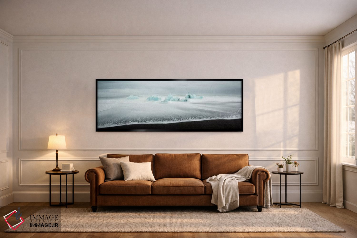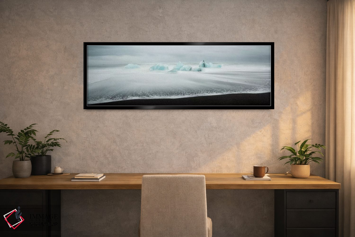 براساس پالت خنثی اثر، قاب مشکی مات (فریم باریک) پیشنهاد اول است و سفید مات (فریم باریک) مکمل. برای سفارشهای پروژهای با ابعاد و قابهای اختصاصی با ایماژ در تماس باشید.