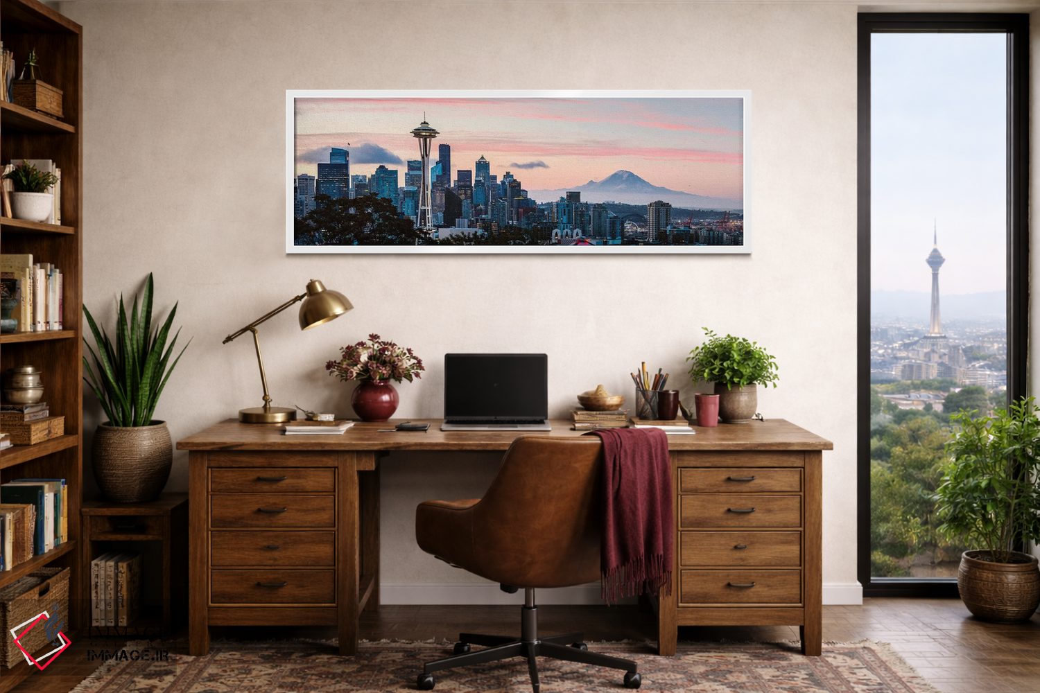 «منظره شهر سیاتل و کوه رینیر» اثرِ «ماتئو کولومبو» میتواند به فضا، روایت ملایم و قابل لمس بدهد؛ برای کافهها و فضاهای عمومی کوچک پیشنهاد میشود. اگر میخواهید مهمانها مکث کنند، این اثر دلیل خوبیست.