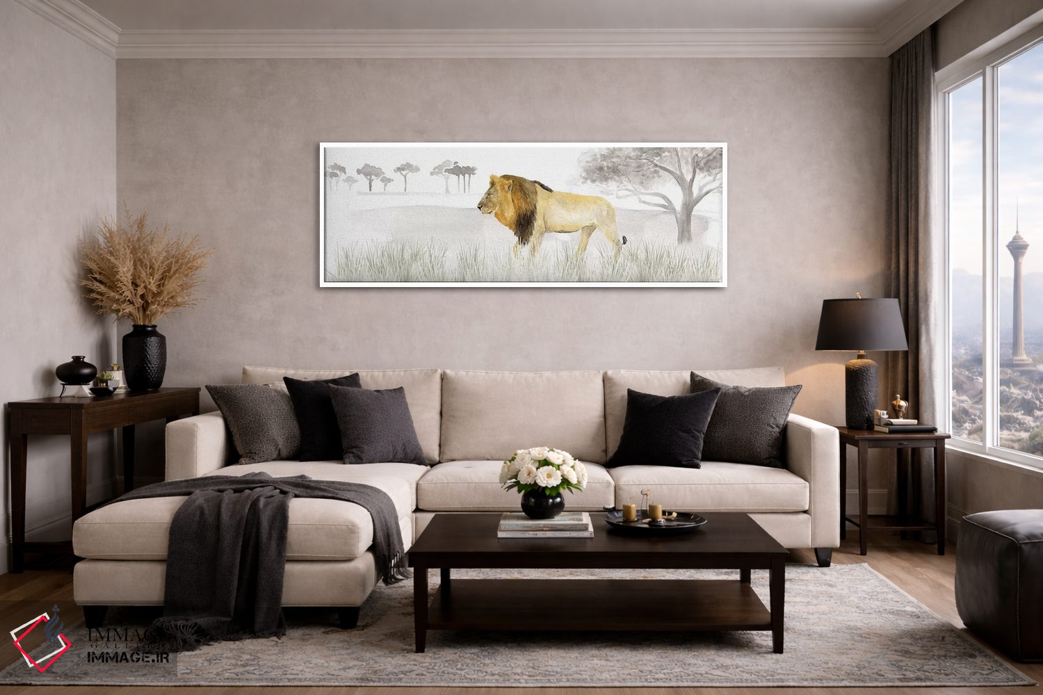 تابلو دکوراتیو پنل افقی شیر سرنگتی اثر تارا رید