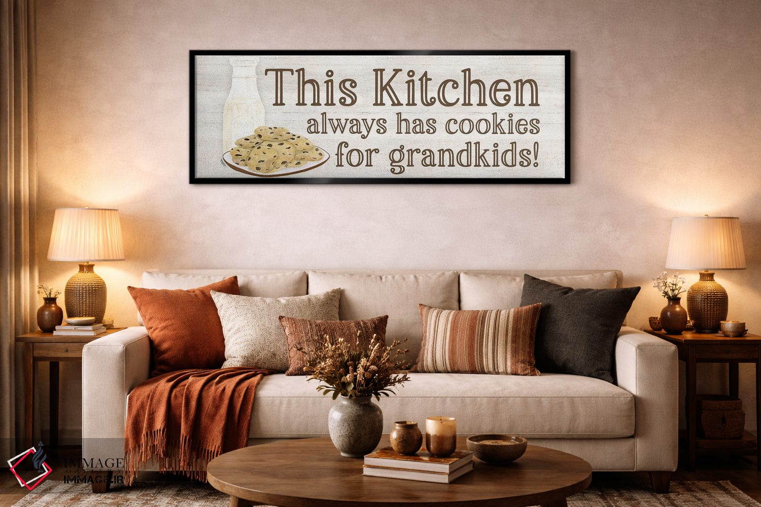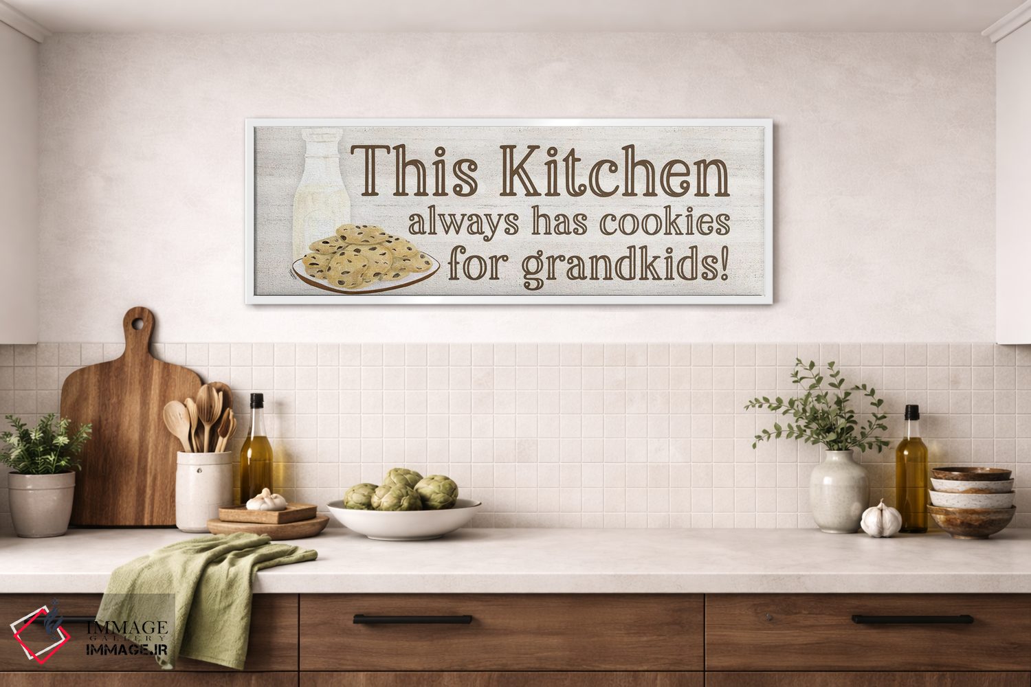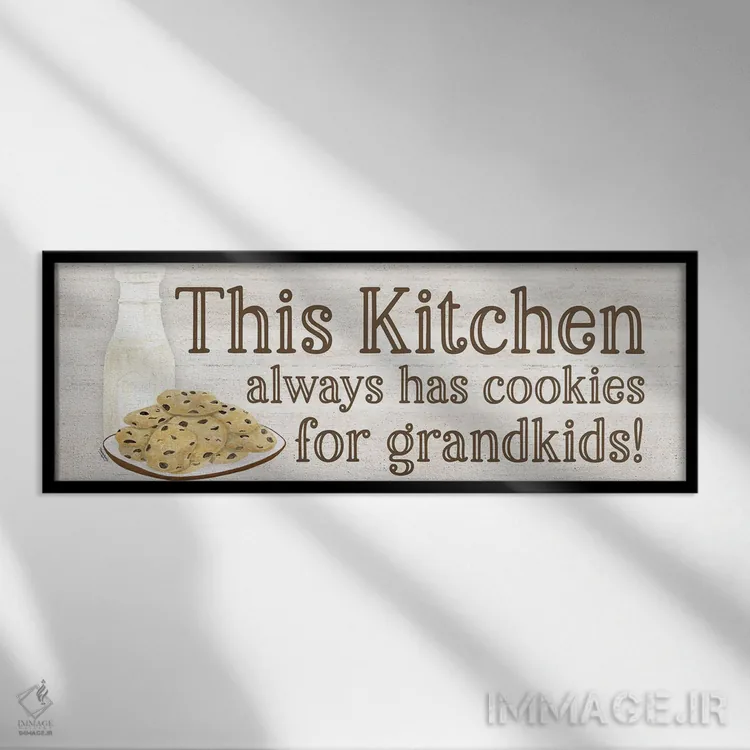 این تابلو با عنوان «پنل زندگی پدربزرگ و مادربزرگ شماره ۴—کوکیها» اثرِ «تارا رید»، حسِ گرم و صمیمی به فضا میدهد.