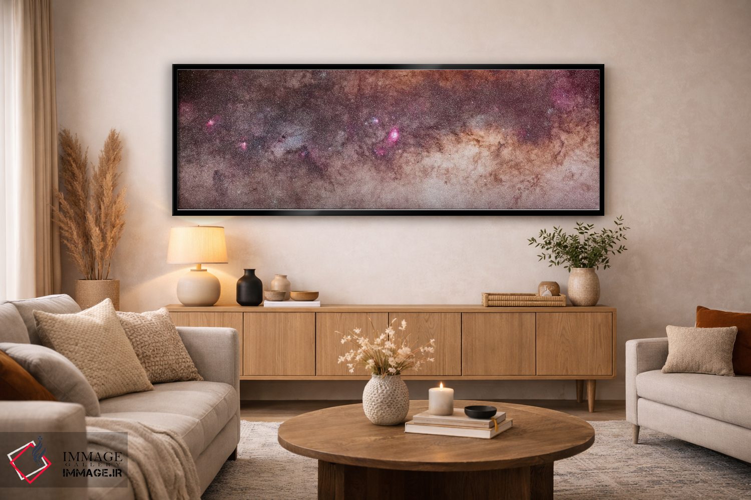 براساس پالت گرم اثر، قاب تیک گرم (چوبی) پیشنهاد اول است و مشکی مات (فریم متوسط) مکمل. برای سفارشهای پروژهای با ابعاد و قابهای اختصاصی با ایماژ در تماس باشید.