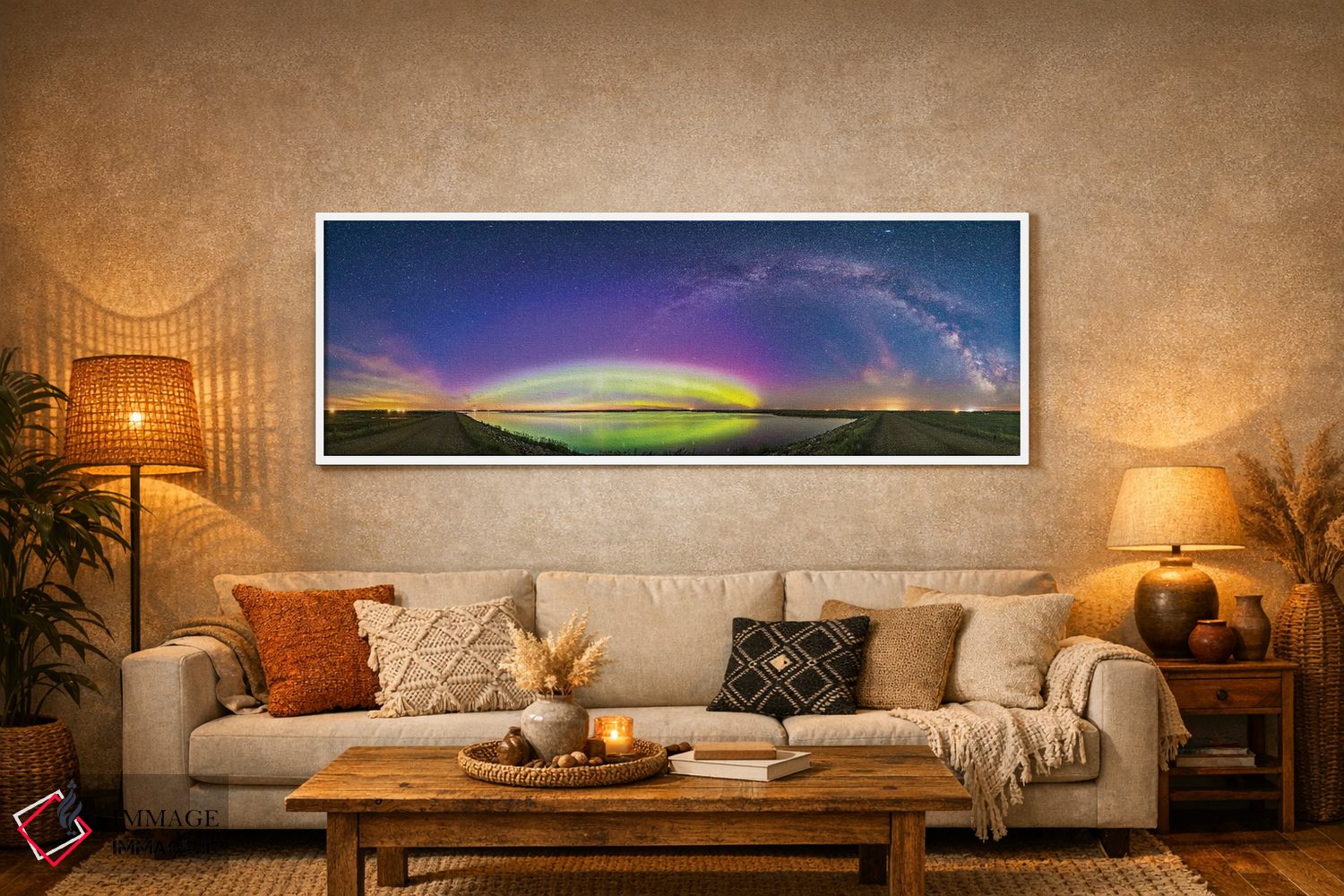برای سلیقههایی که به جزئیات احترام میگذارند، «Alberta، Canada.، قوس شفق شمالی و بیضی شفق قطبی بر فراز دریاچه کراولینگ، آلبرتا، کانادا» اثرِ «آلن دایر» جلوهٔ رنگها را طبیعیتر و متعادلتر نشان میدهد؛ برای خانههایی که به هماهنگی رنگها اهمیت میدهند پیشنهاد میشود. به دیوار حس «تمامشده» میدهد.