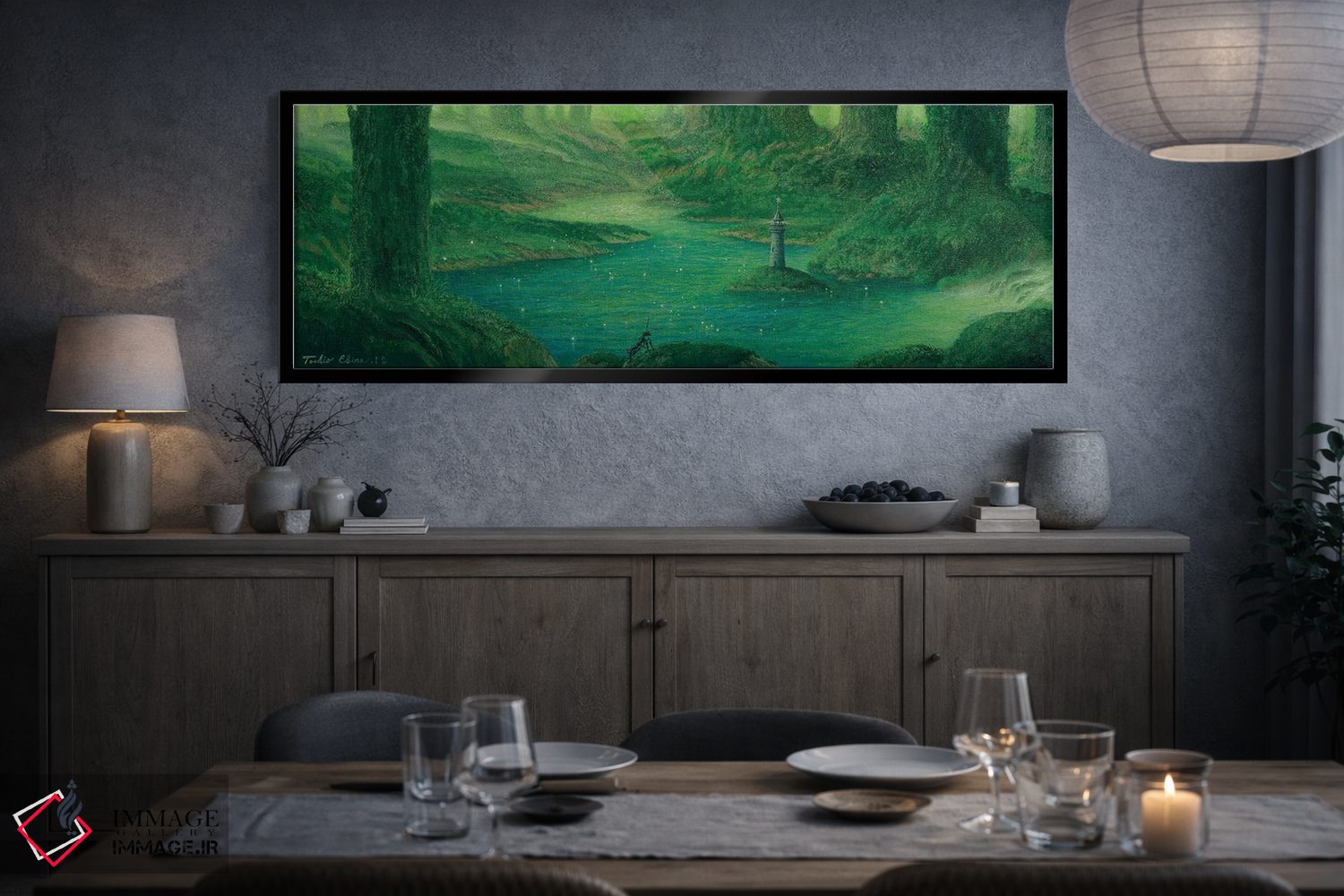 براساس پالت سرد اثر، قاب سفید مات (فریم باریک) پیشنهاد اول است و نقرهای برسخورده (متالیک) مکمل. برای سفارشهای پروژهای با ابعاد و قابهای اختصاصی با ایماژ در تماس باشید.