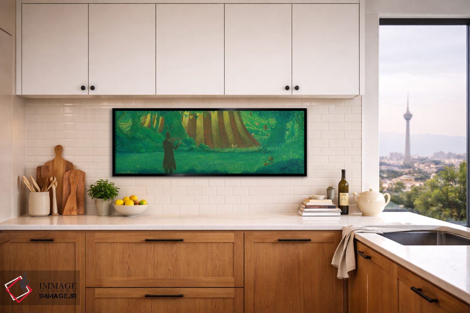 براساس پالت ترکیبی اثر، قاب تیک گرم (چوبی) پیشنهاد اول است و مشکی مات (فریم متوسط) مکمل. برای سفارشهای پروژهای با ابعاد و قابهای اختصاصی با ایماژ در تماس باشید.
