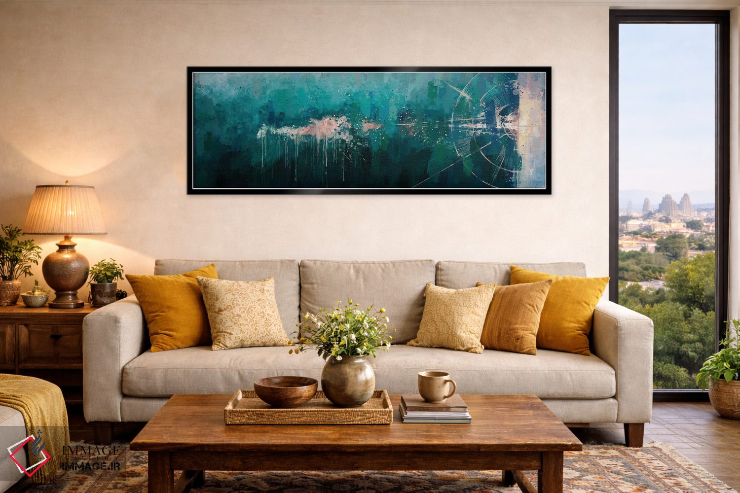 براساس پالت ترکیبی اثر، قاب تیک گرم (چوبی) پیشنهاد اول است و مشکی مات (فریم متوسط) مکمل. برای سفارشهای پروژهای با ابعاد و قابهای اختصاصی با ایماژ در تماس باشید.