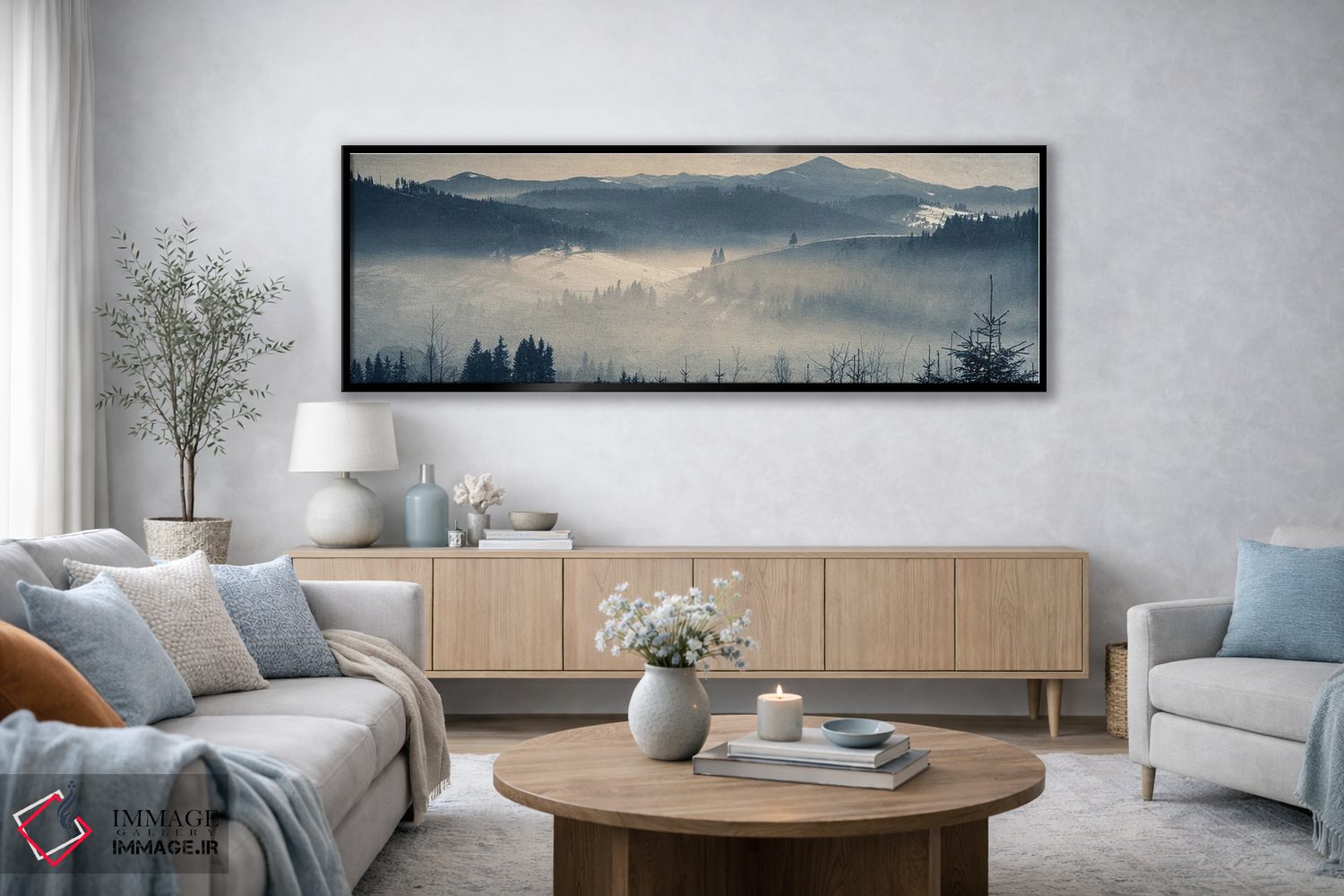 این تابلو با عنوان «گرگومیش یخبندان در کوهستان» اثرِ «والریکس» به فضا، روایت ملایم و قابل لمس میدهد؛ برای اتاق کار و گوشهٔ مطالعه پیشنهاد میشود. روی دیوار، طبیعی و متعادل دیده میشود—بیاغراق و درست.