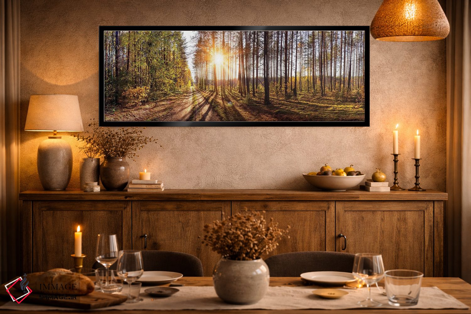 براساس پالت گرم اثر، قاب تیک گرم (چوبی) پیشنهاد اول است و مشکی مات (فریم متوسط) مکمل. برای سفارشهای پروژهای با ابعاد و قابهای اختصاصی با ایماژ در تماس باشید.