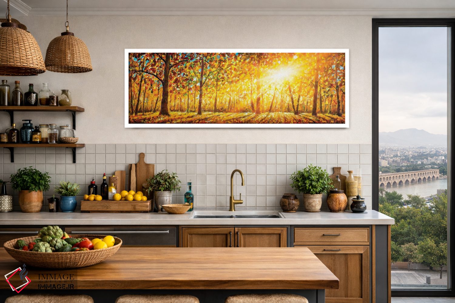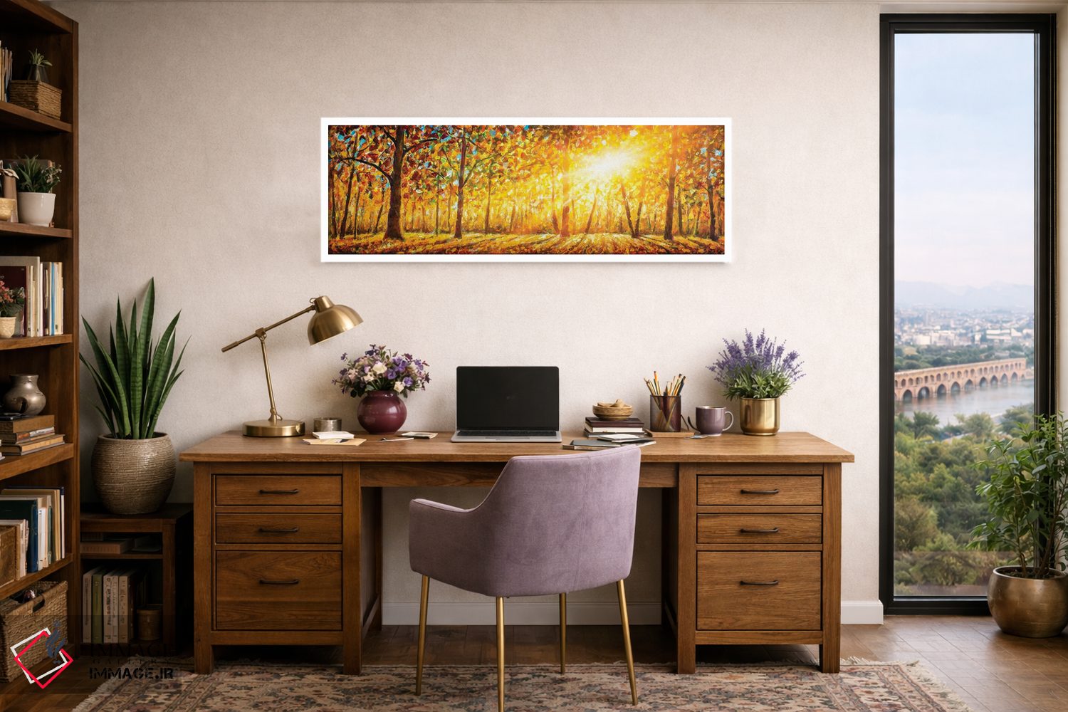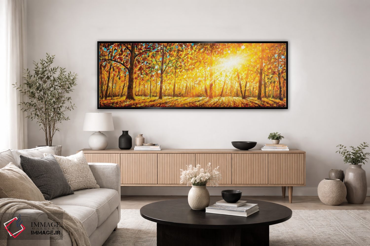 براساس پالت گرم اثر، قاب تیک گرم (چوبی) پیشنهاد اول است و مشکی مات (فریم متوسط) مکمل. برای سفارشهای پروژهای با ابعاد و قابهای اختصاصی با ایماژ در تماس باشید.