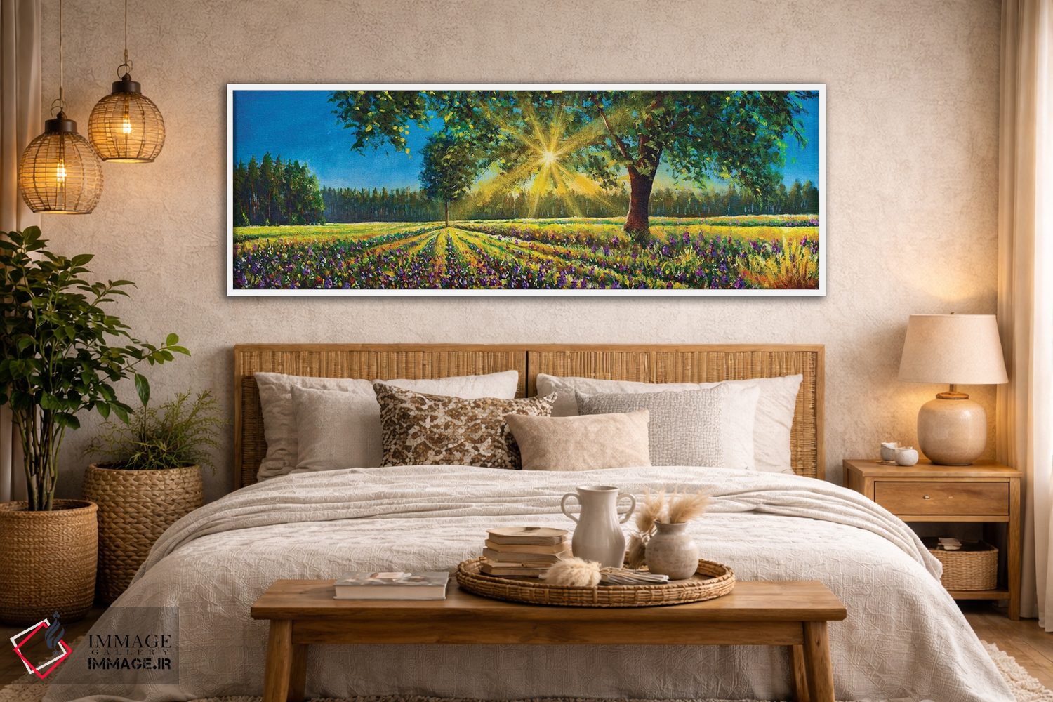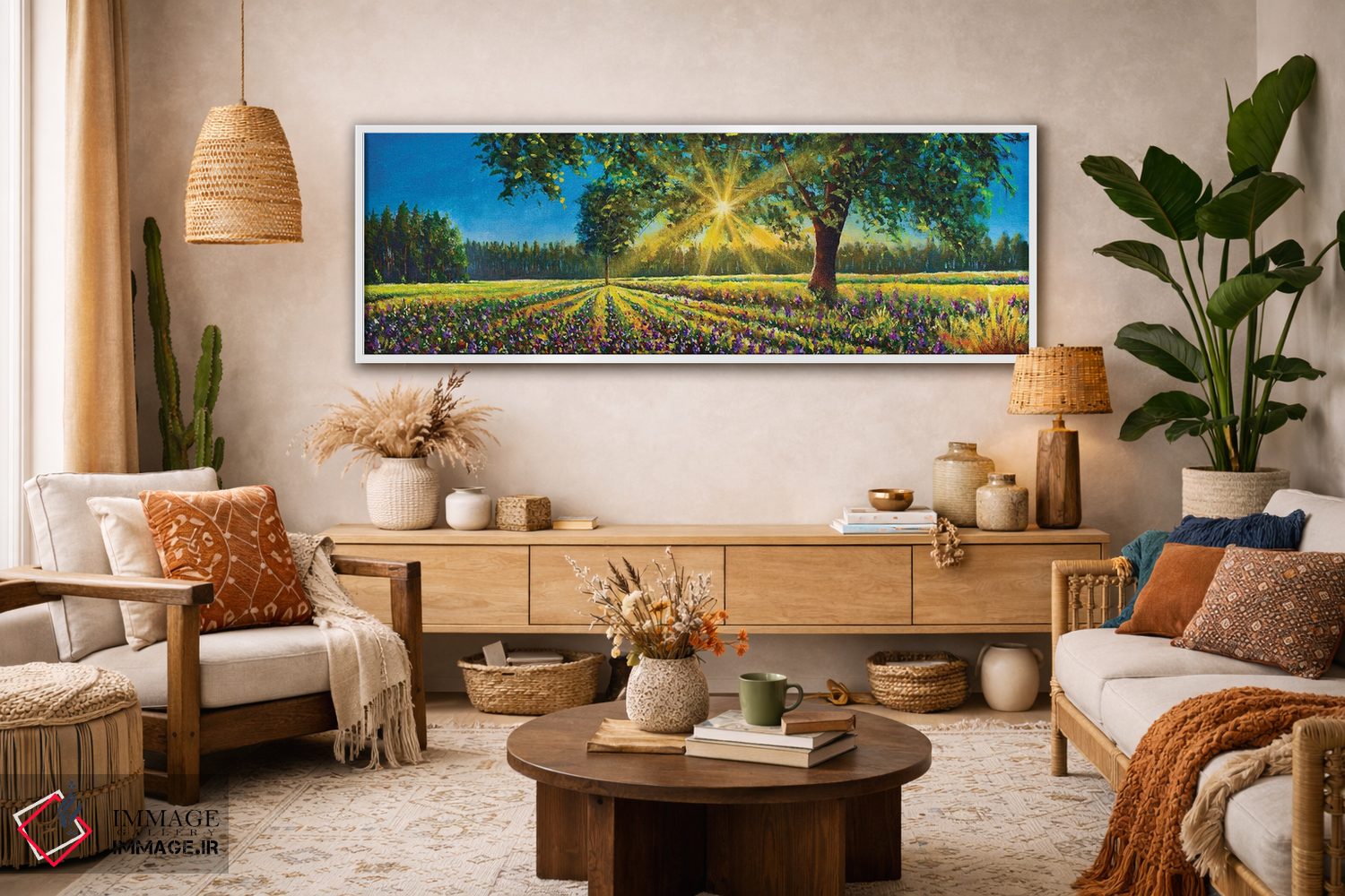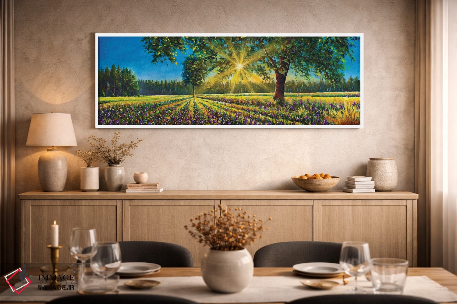 تابلو دکوراتیو Big Trees And Forest,پانورامای فوق عریض از منظره آفتابی خ… اثر والری ریباکوف - نمای روبه‌رو روی دیوار