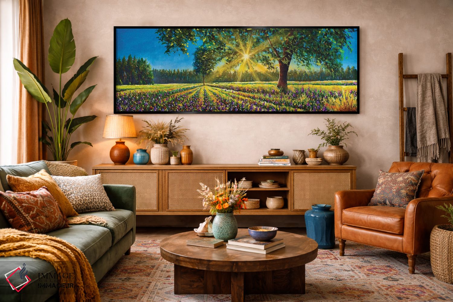 تابلو دکوراتیو Big Trees And Forest,پانورامای فوق عریض از منظره آفتابی خ… اثر والری ریباکوف - D6B