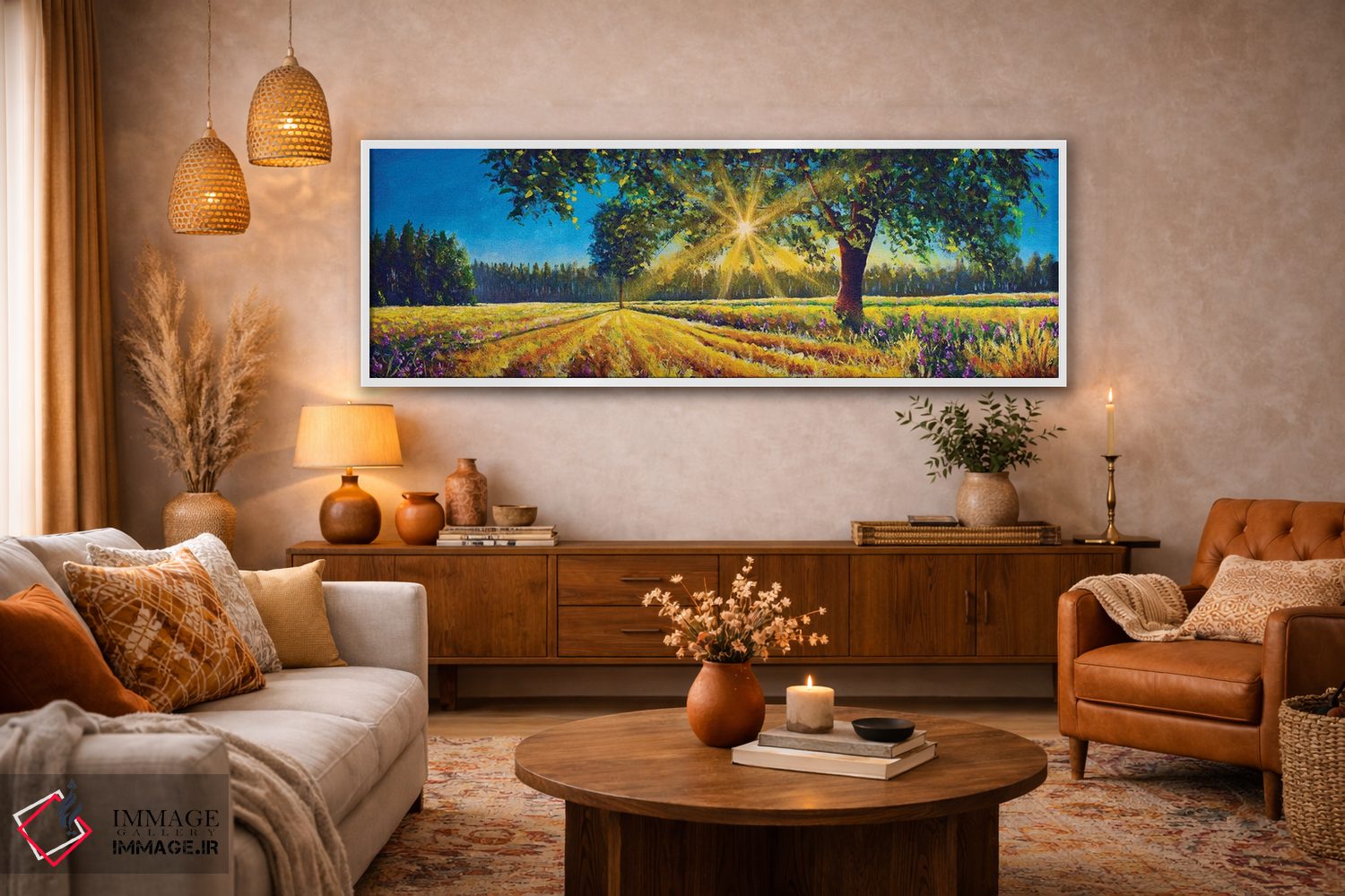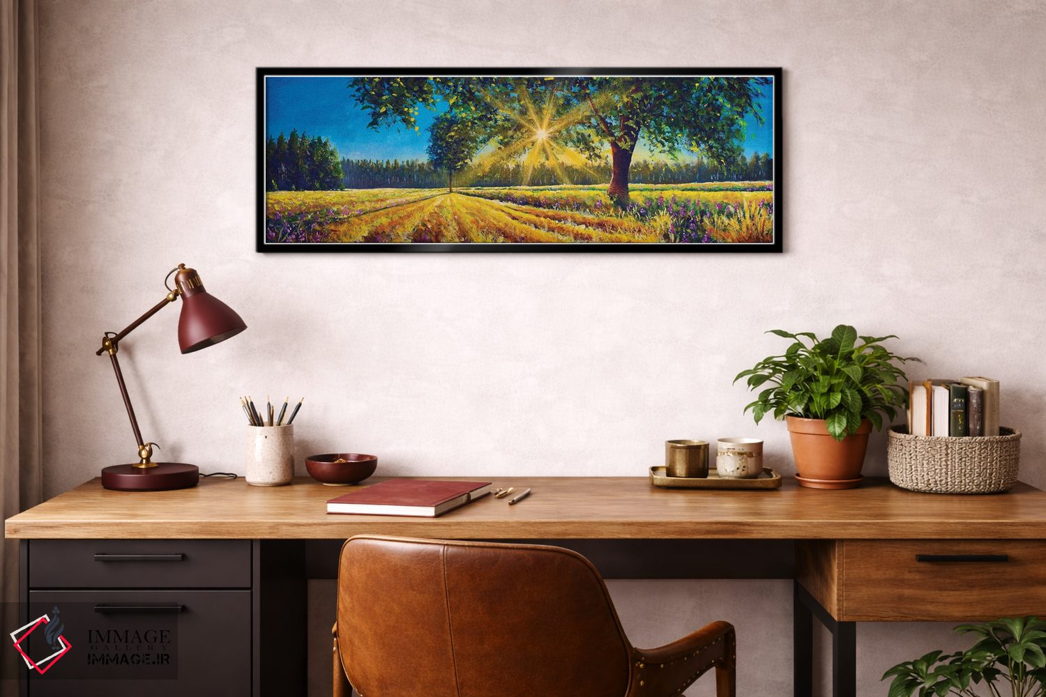 براساس پالت ترکیبی اثر، قاب تیک گرم (چوبی) پیشنهاد اول است و مشکی مات (فریم متوسط) مکمل. برای سفارشهای پروژهای با ابعاد و قابهای اختصاصی با ایماژ در تماس باشید.