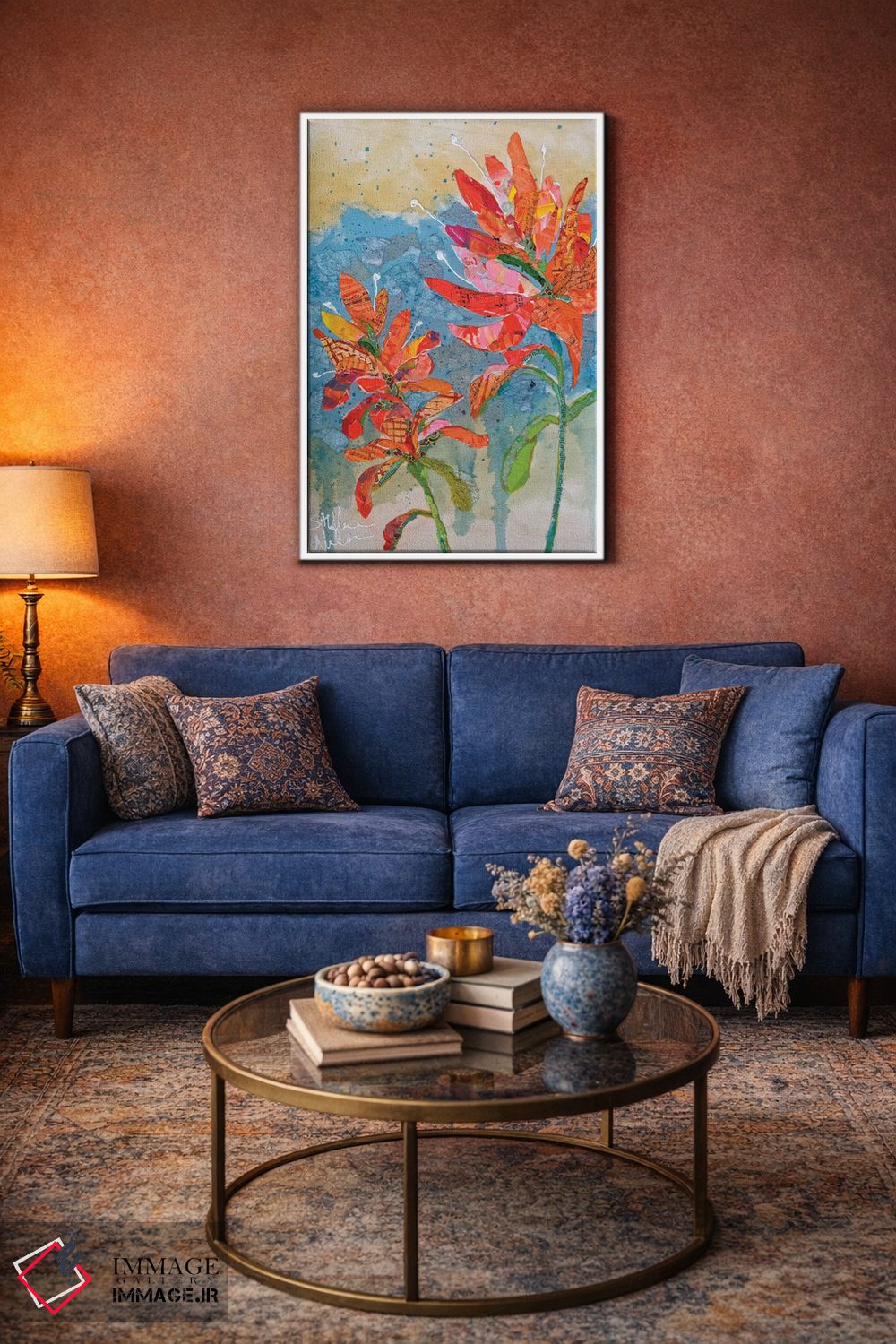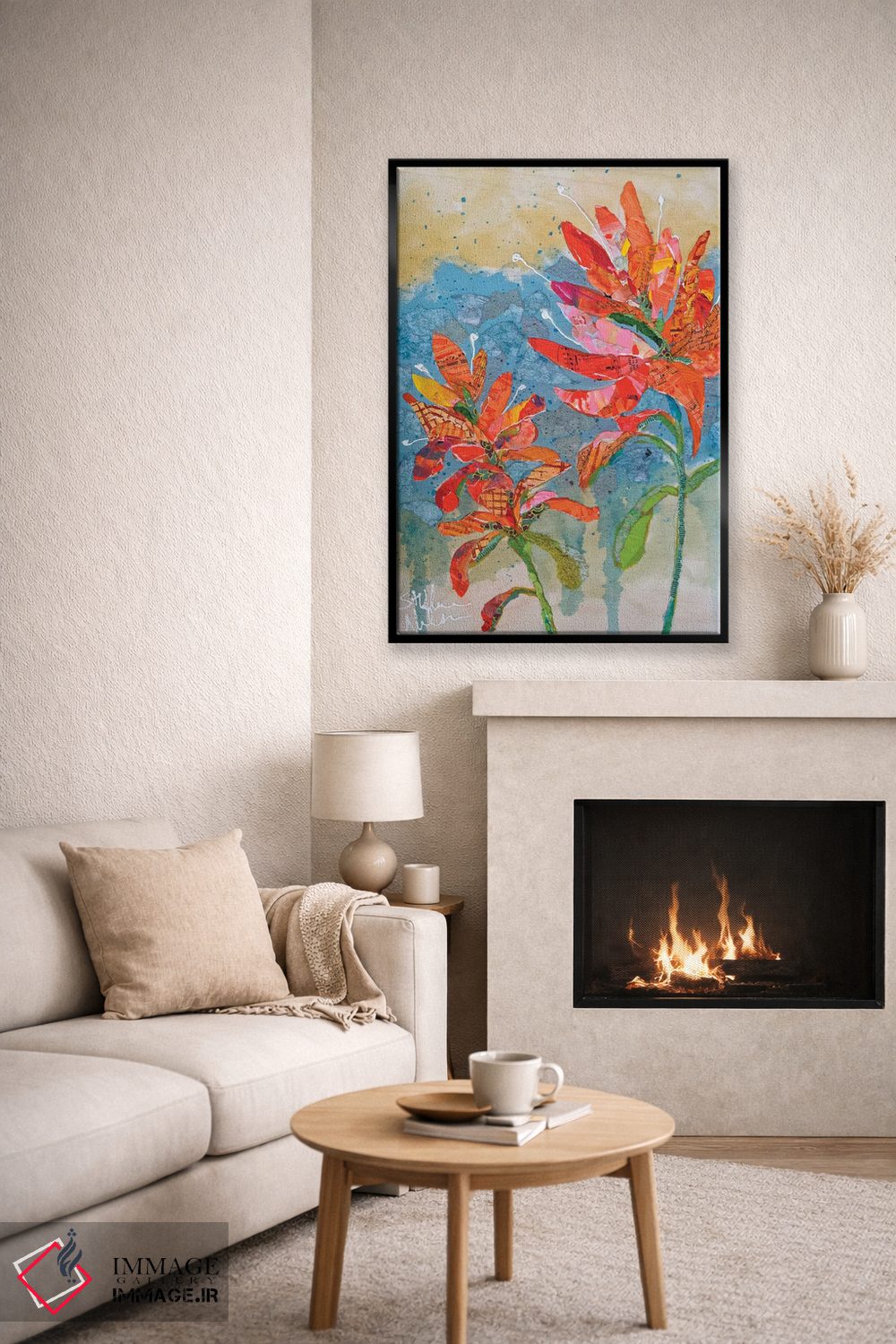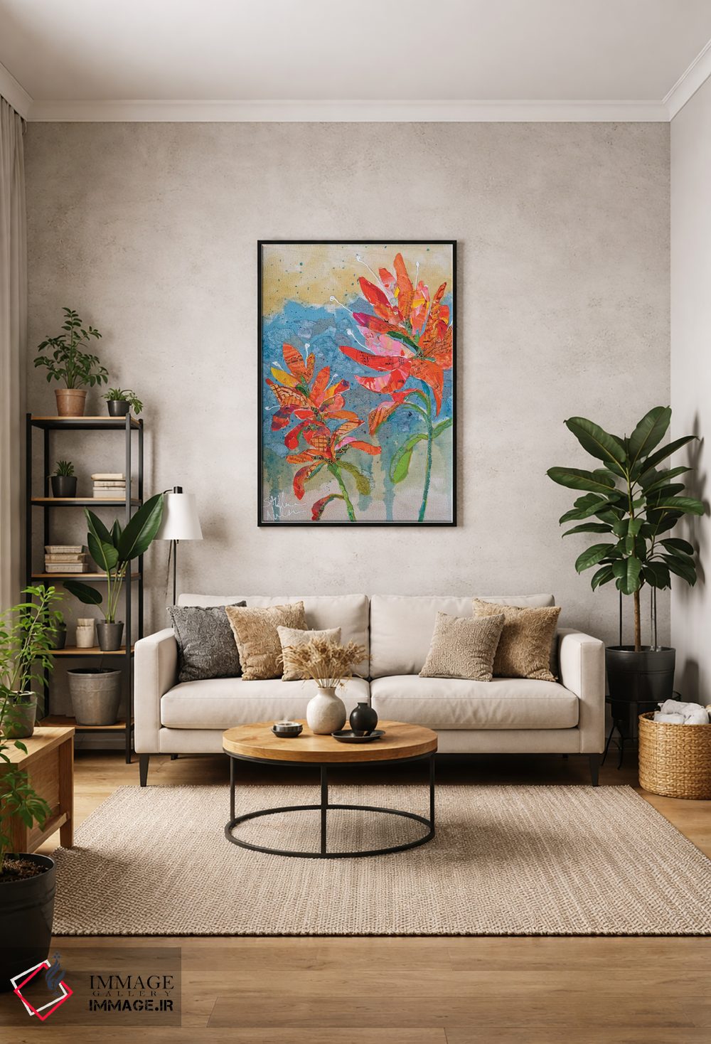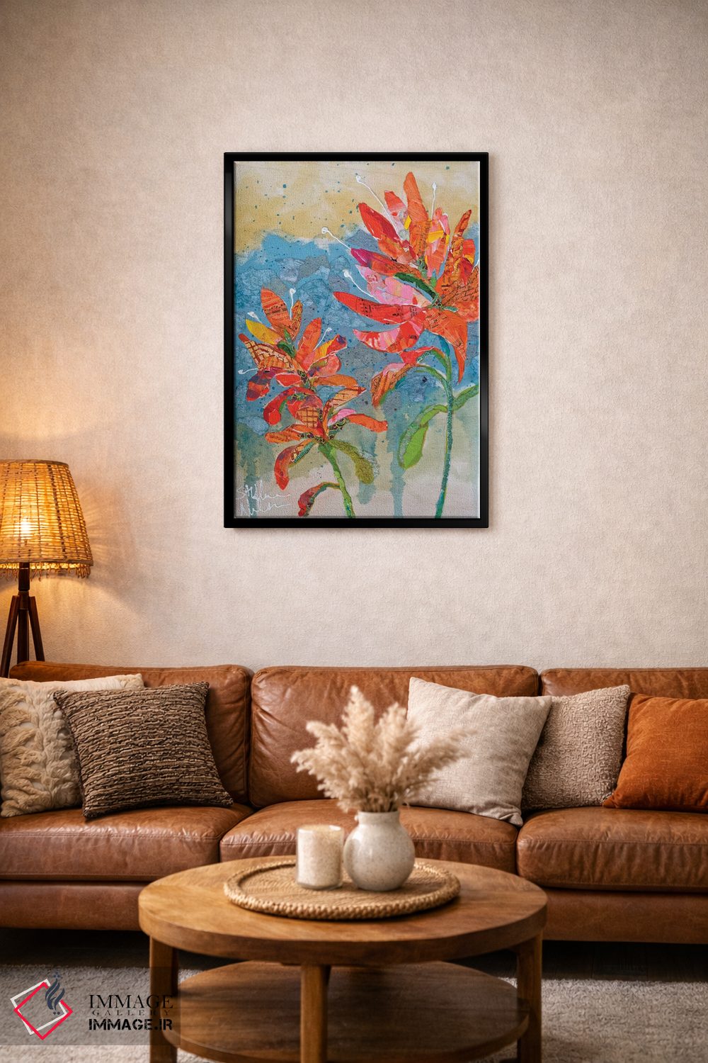 براساس پالت ترکیبی اثر، قاب تیک گرم (چوبی) پیشنهاد اول است و مشکی مات (فریم متوسط) مکمل. برای سفارشهای پروژهای با ابعاد و قابهای اختصاصی با ایماژ در تماس باشید.