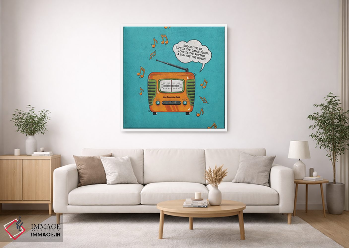 تابلو دکوراتیو خدا دی جی است اثر استر کی - نمای روبه‌رو روی دیوار