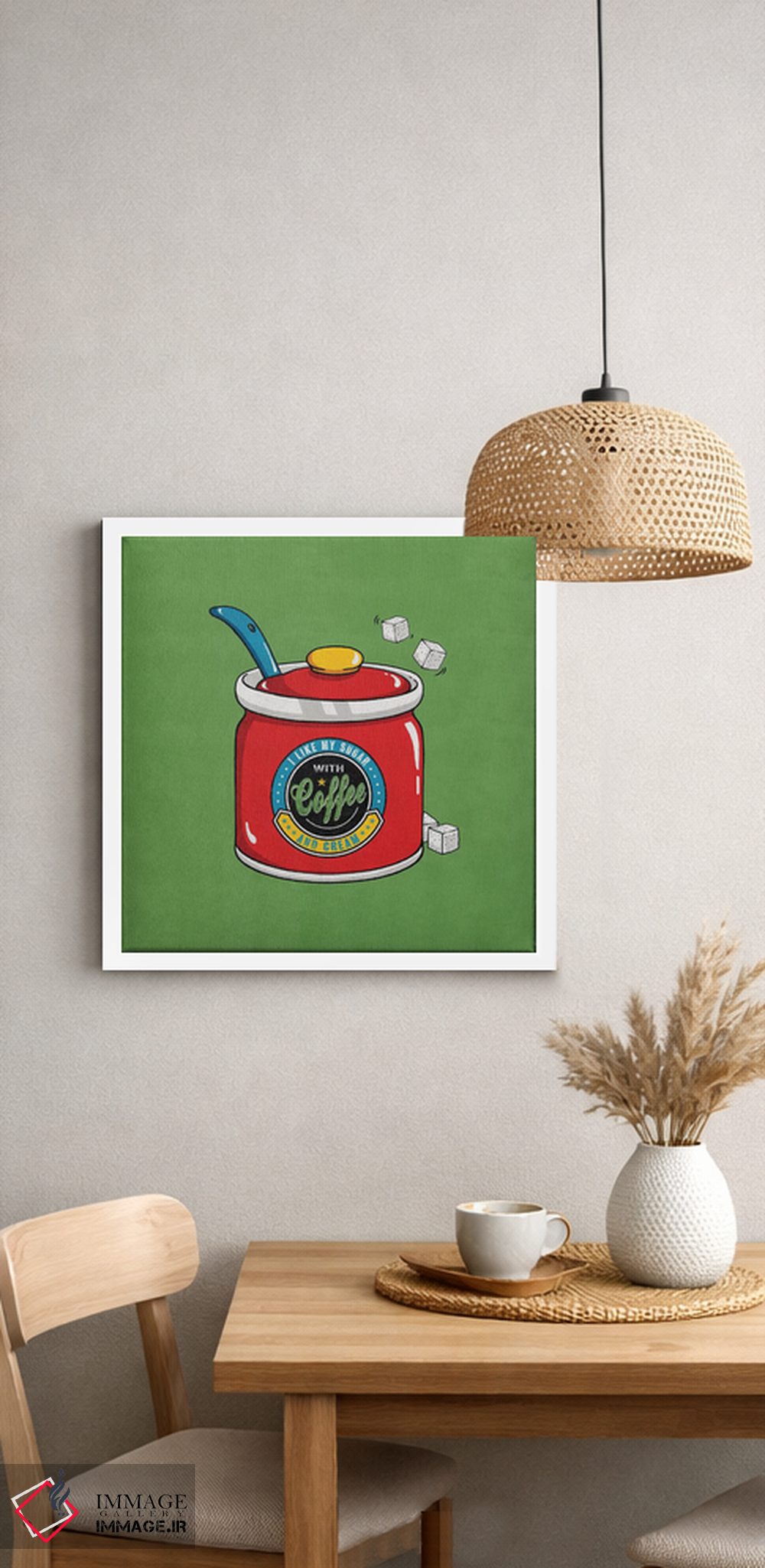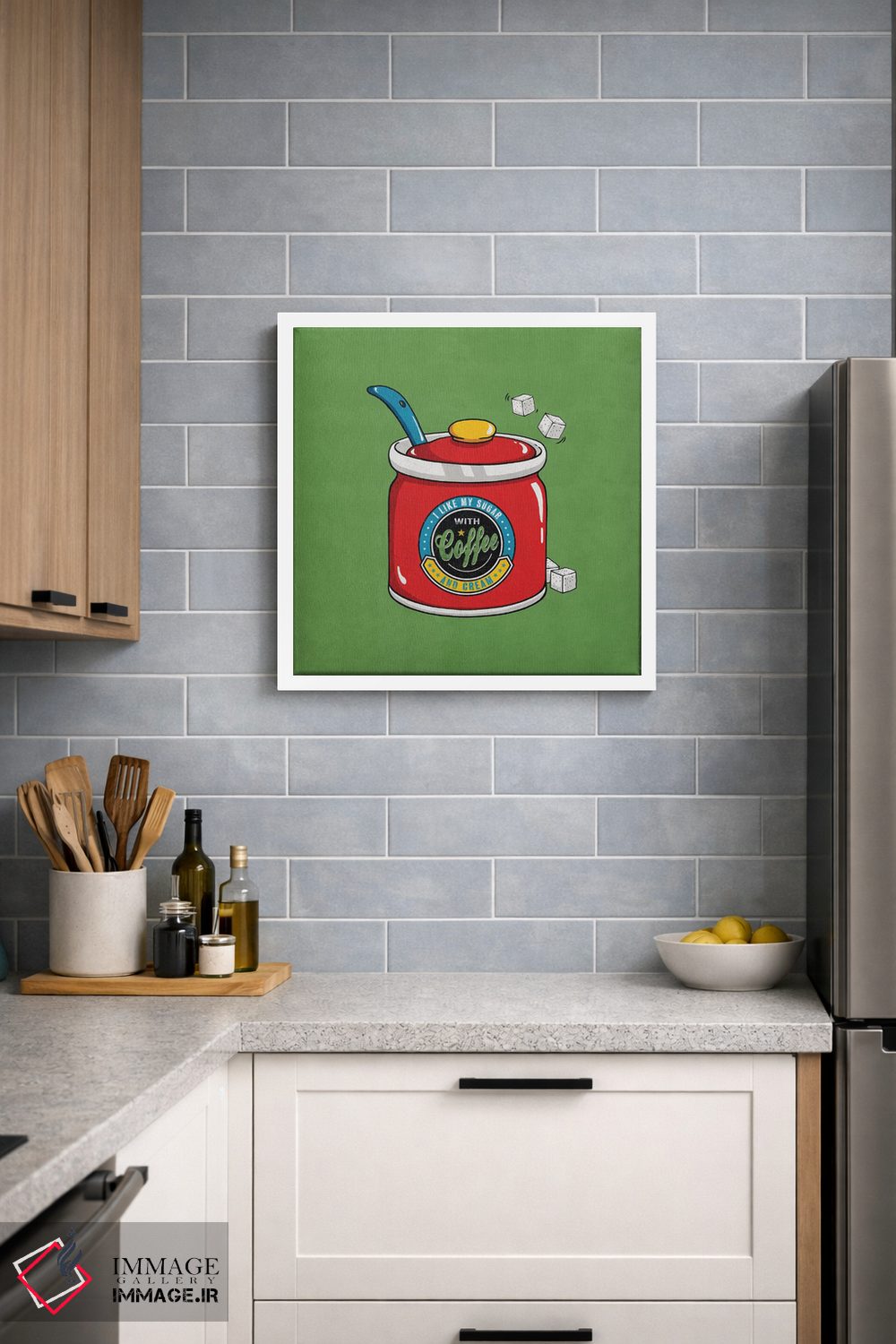 این تابلو با موضوعِ این دسته و اجرای هنری، یک انتخاب جذاب برای آشپزخانه یا فضای غذاخوری است اثرِ «استر کی».