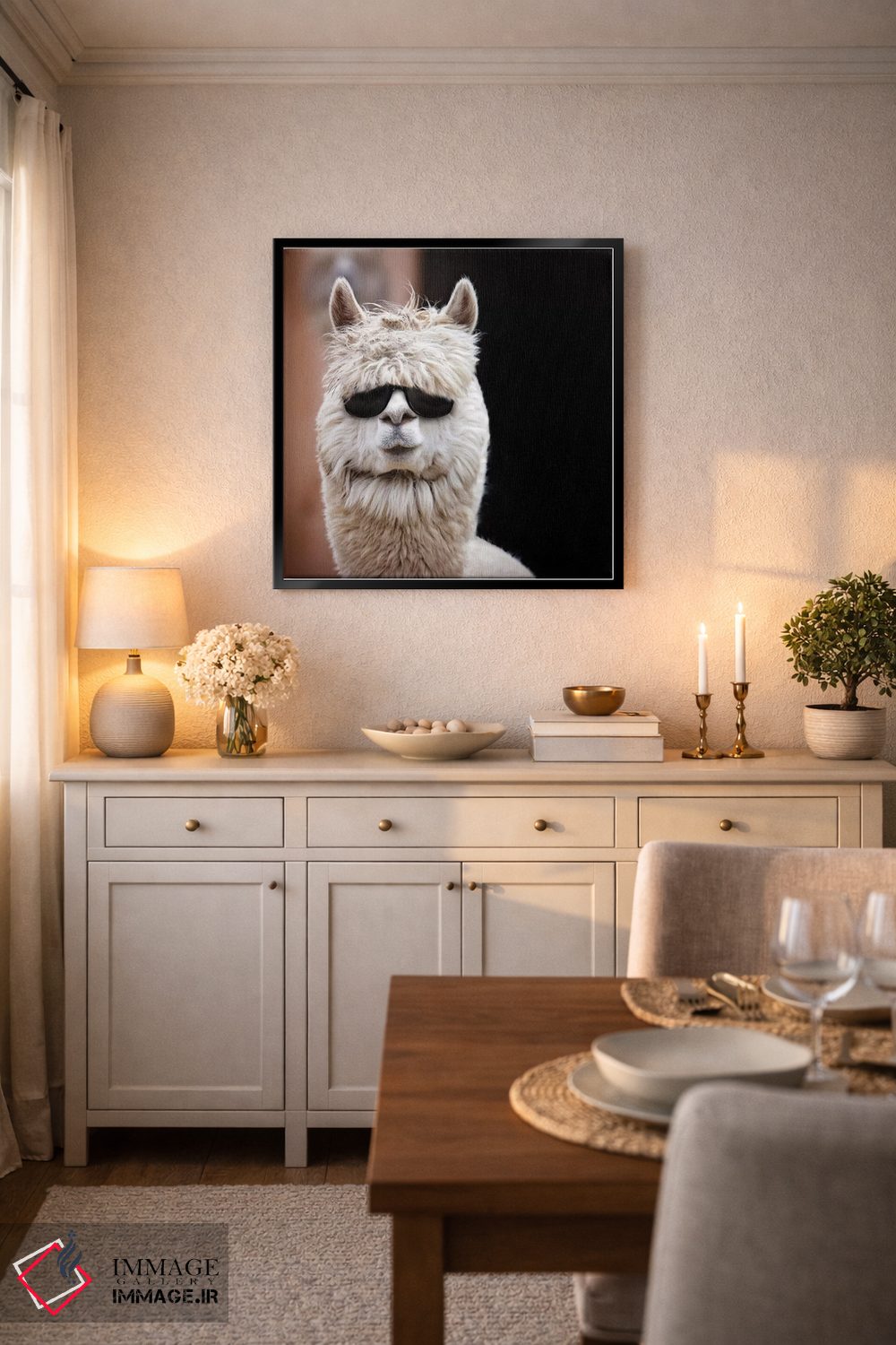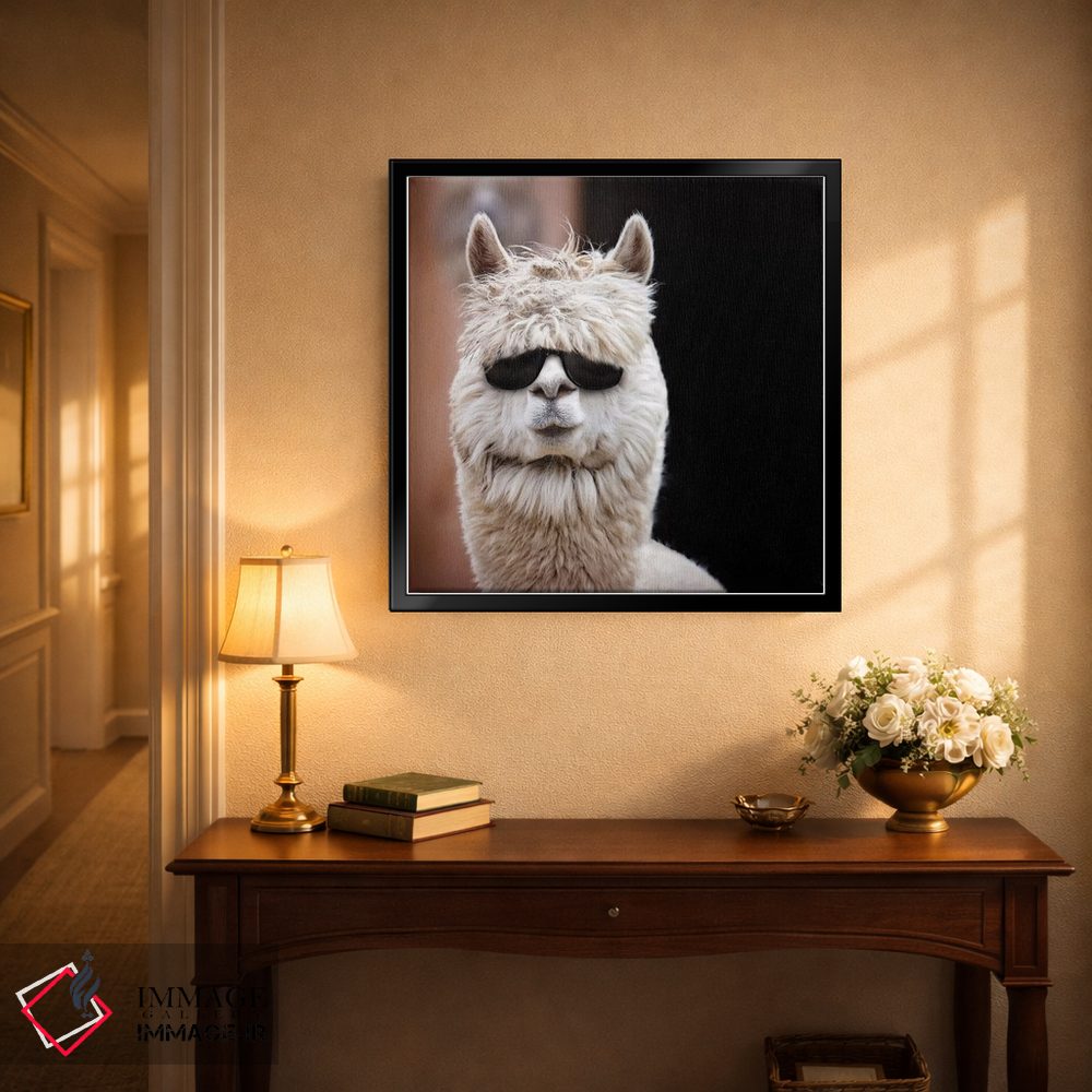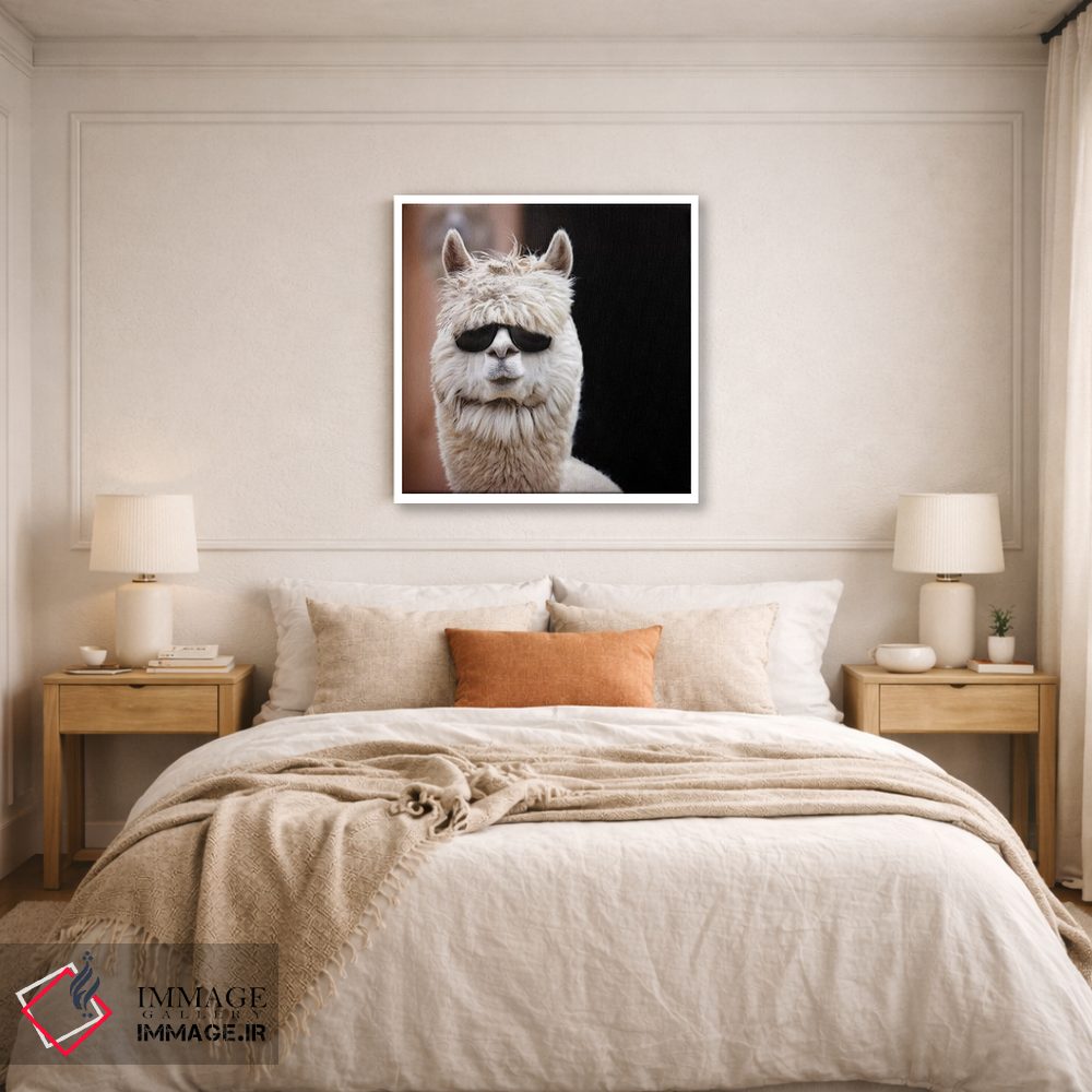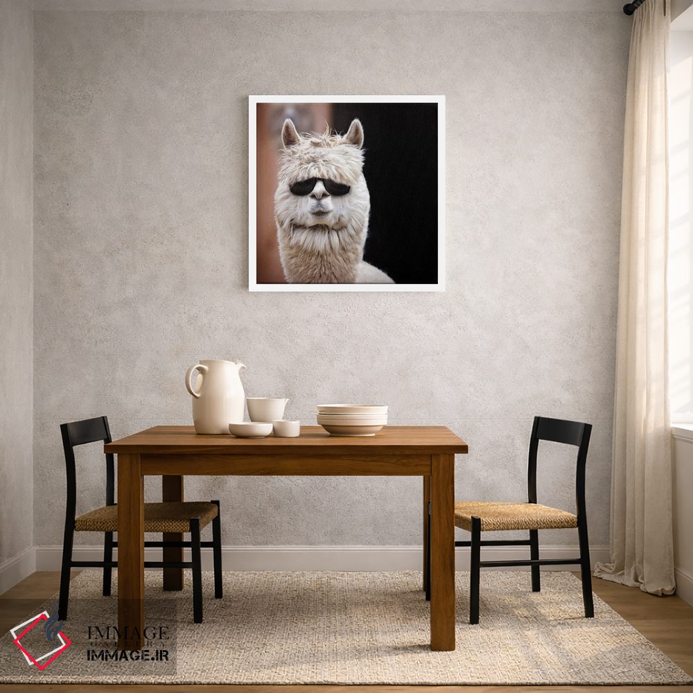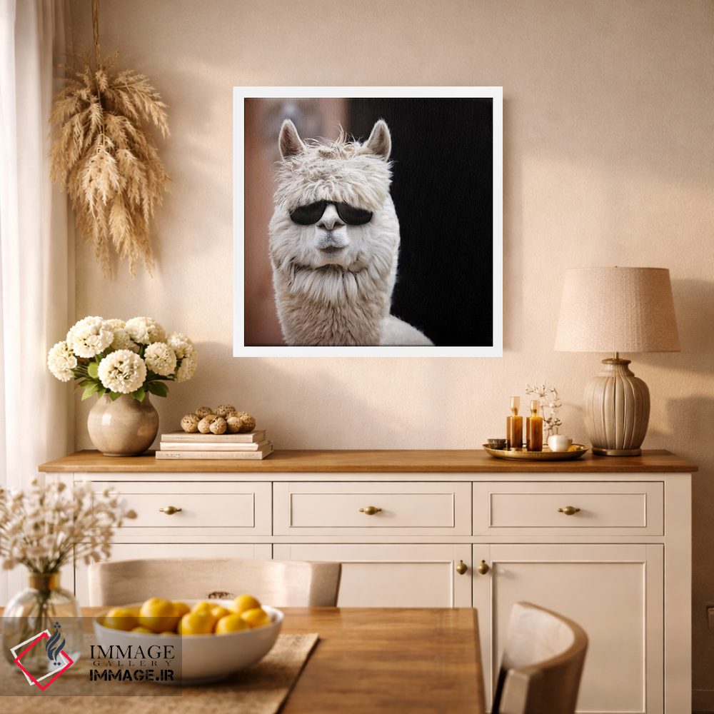 «آلپاکا با عینک آفتابی» اثرِ «کارن بورک» با نگاه عکاسانه به این اثر، حسِ حضور در فضا را زنده میکند؛ انتخابی مطمئن برای دیوارهای آرام و مینیمال.
