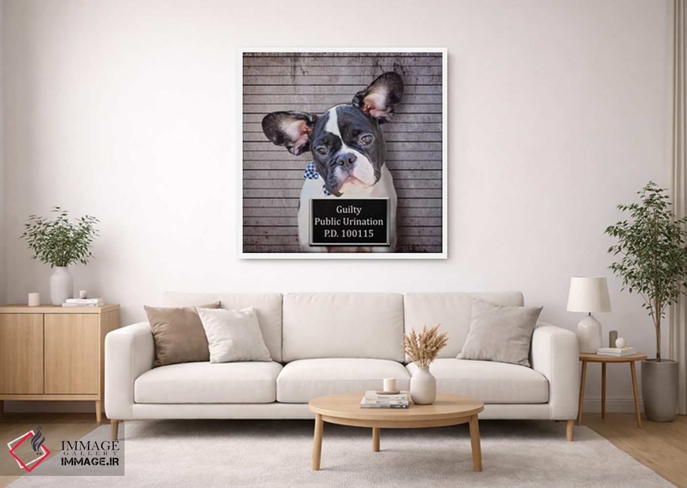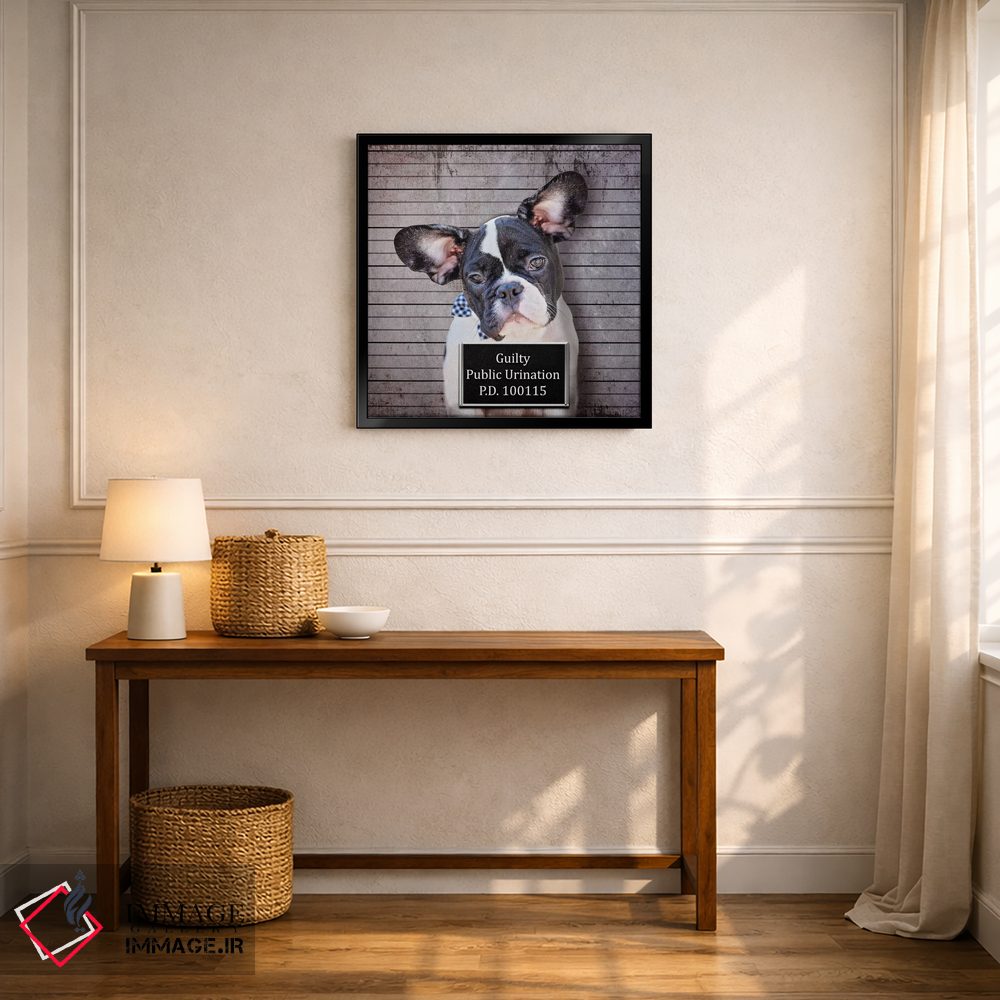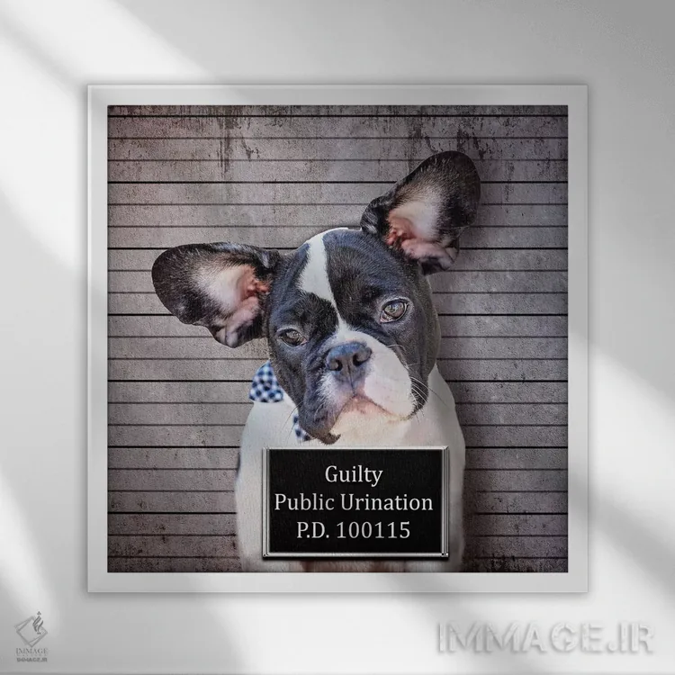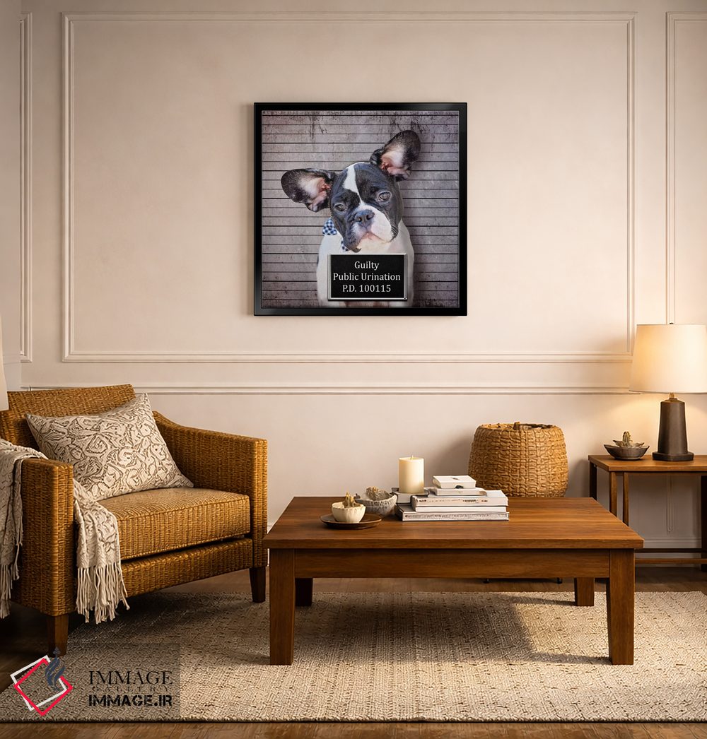 تابلو دکوراتیو ادرار در ملا عام اثر کارن بورک - نمای قاب‌دار سفید