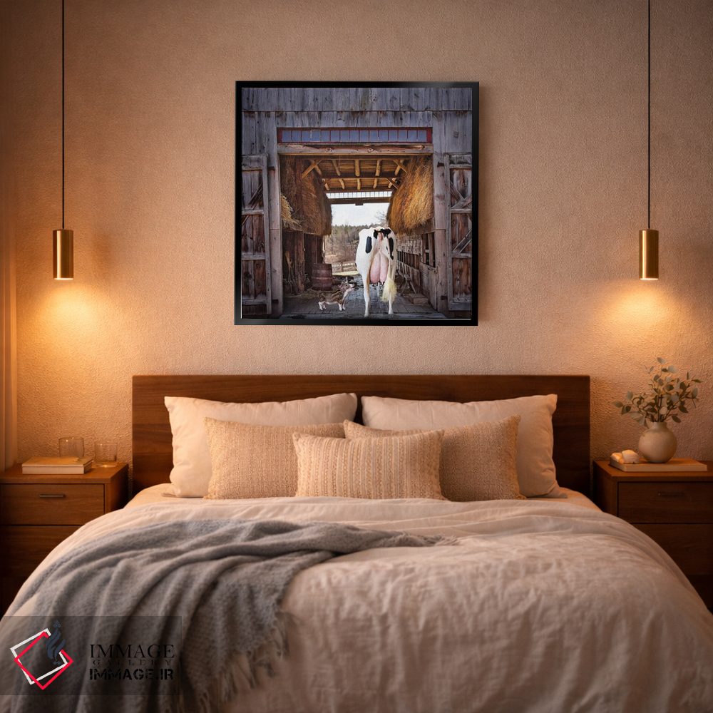 برای اتاقی که به یک عنصر دوستداشتنی نیاز دارد، «دوستان انبار» اثرِ «کارن بورک» مثل یک امضای بامزه اما متین عمل میکند؛ برای فضاهای روستیک یا بوهو انتخابی خوشسلیقه است. به دیوار، قصه میدهد—اما قصهای آرام و شیک.
