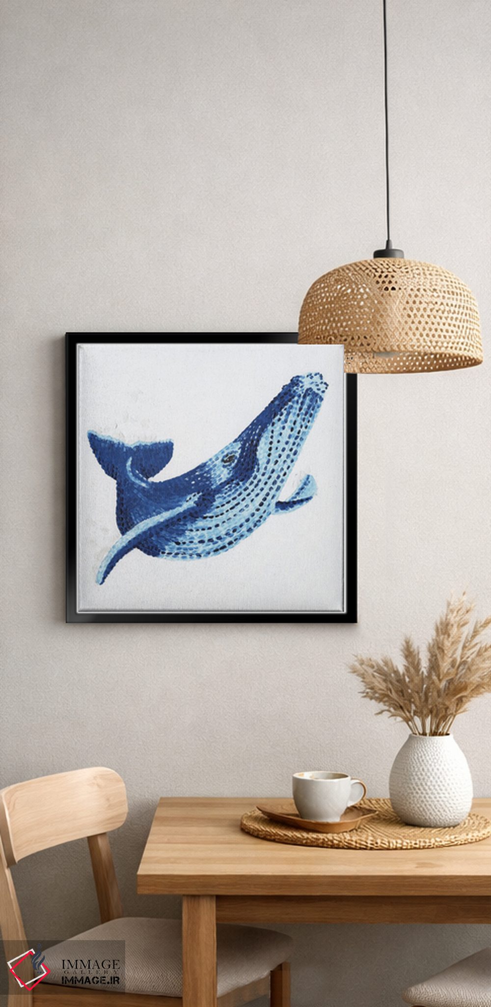 برای دیوارهای ساده، «نهنگ جادویی» اثرِ «کلسی امبلو» به دیوار، انرژیِ نرم و زنده میدهد؛ برای راهروها و ورودیهای گرم انتخابی خوشسلیقه است. با قاب چوبی یا مشکی، حس مرتبتری پیدا میکند.