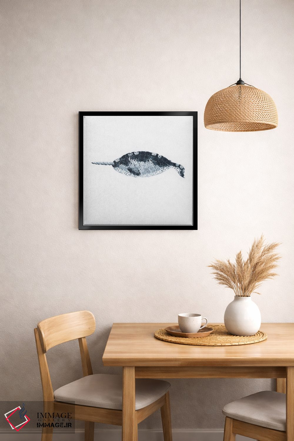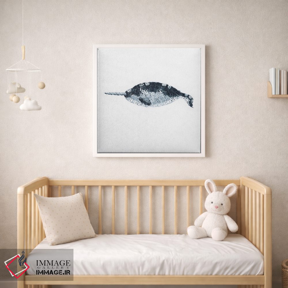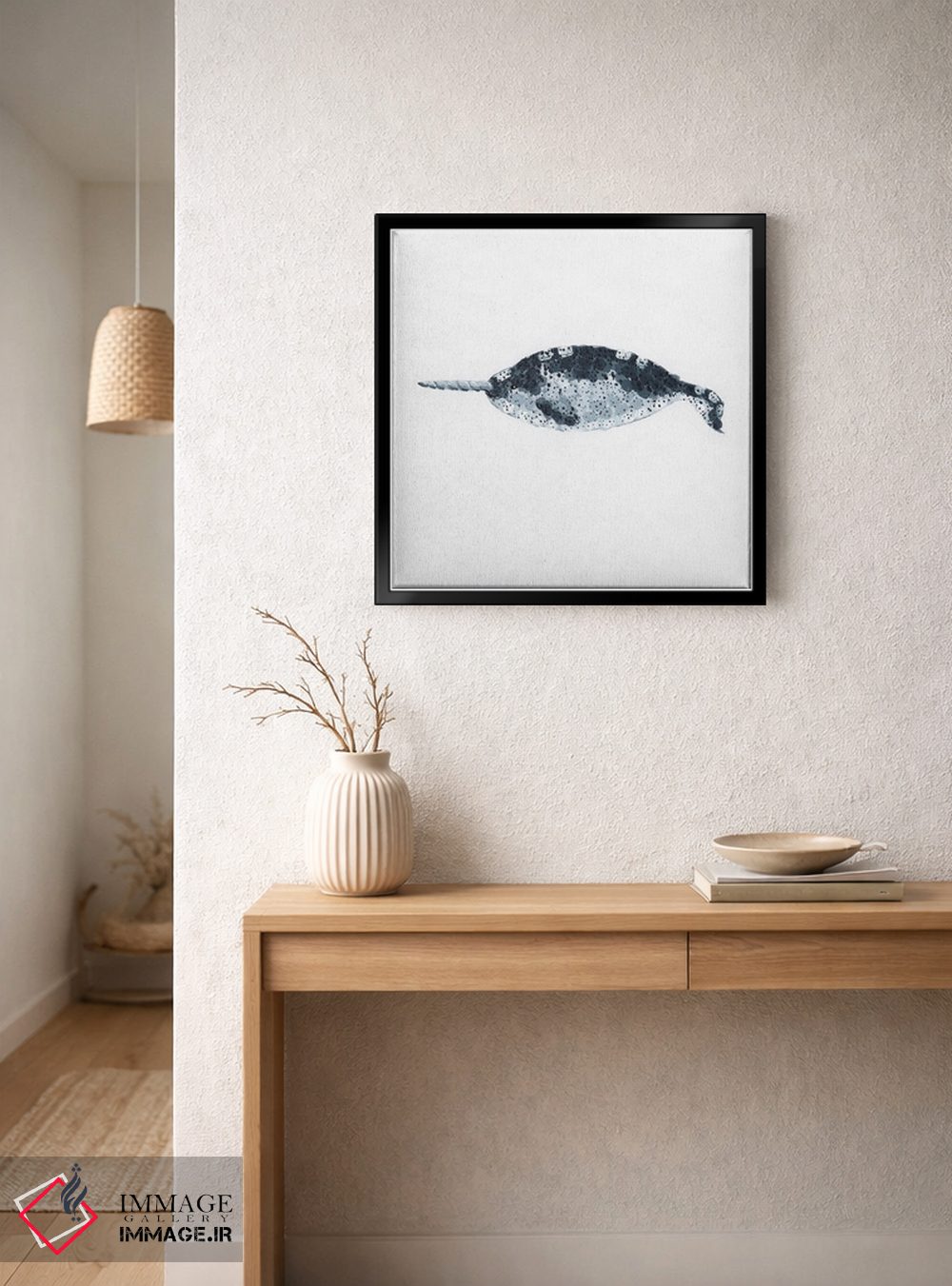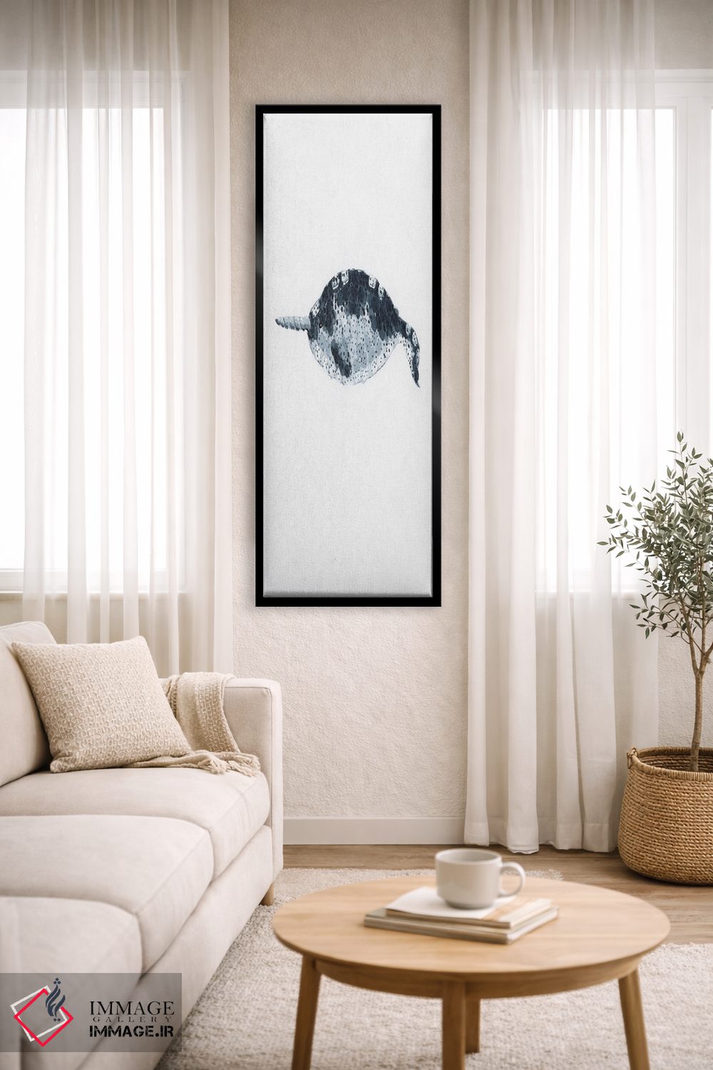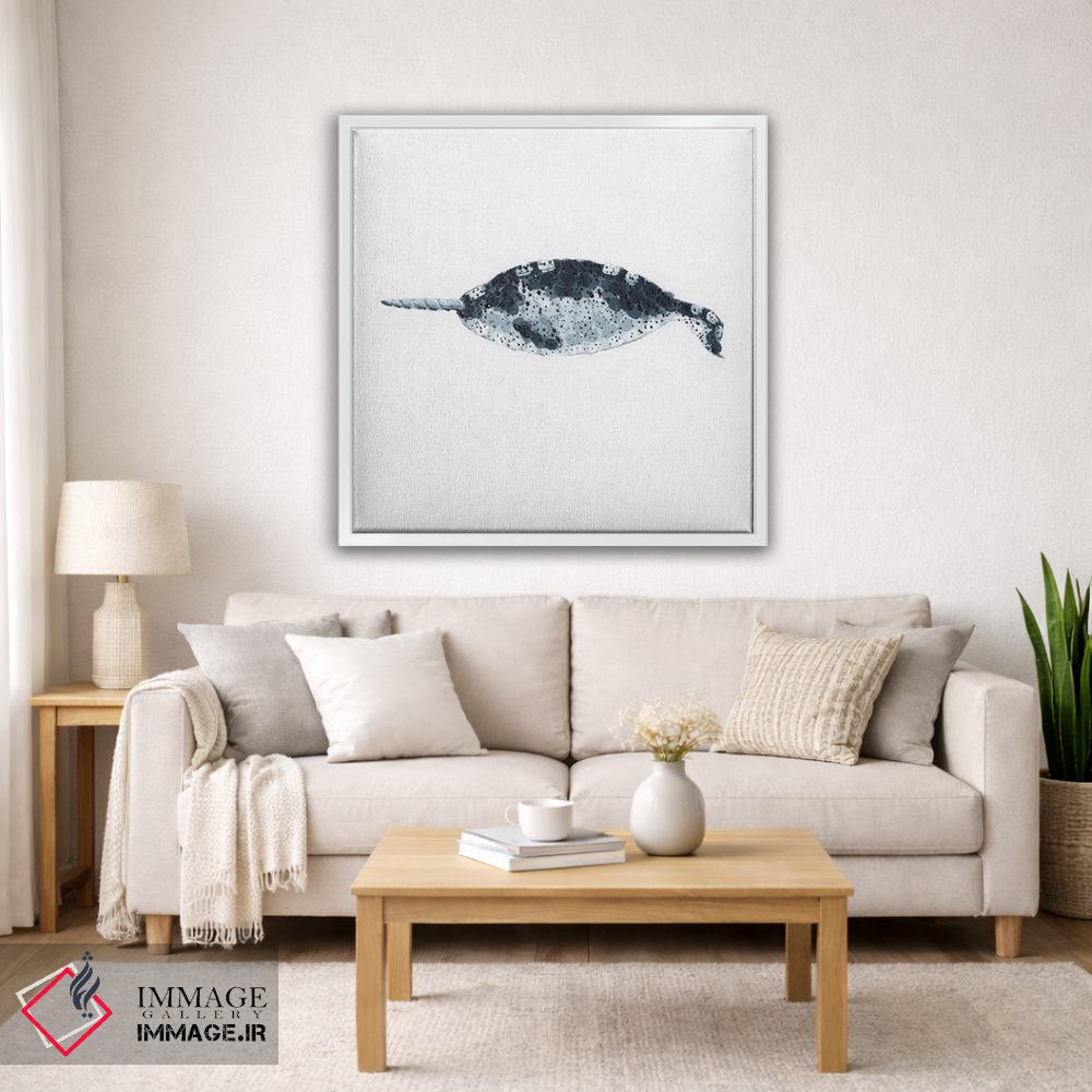 تابلو دکوراتیو ناروال تاج دار سرگردان اثر کلسی امبلو - نمای روبه‌رو روی دیوار
