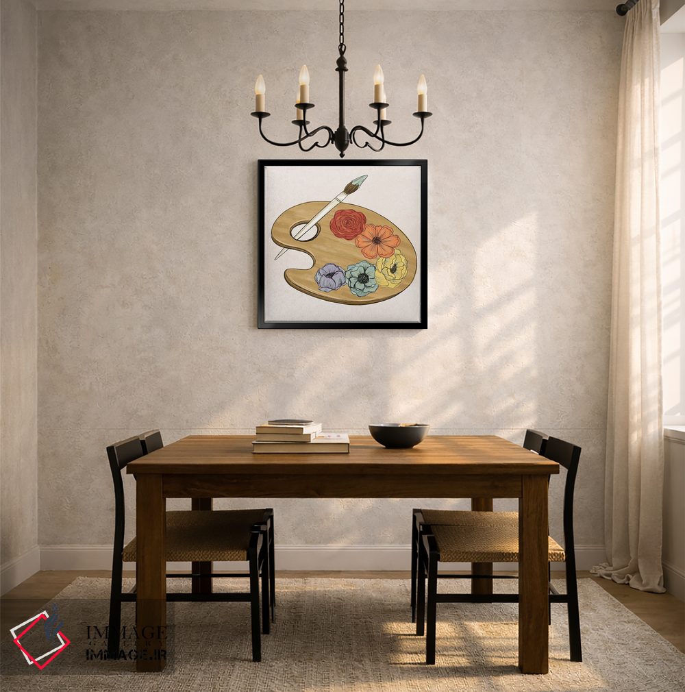 براساس پالت گرم اثر، قاب تیک گرم (چوبی) پیشنهاد اول است و مشکی مات (فریم متوسط) مکمل. برای سفارشهای پروژهای با ابعاد و قابهای اختصاصی با ایماژ در تماس باشید.